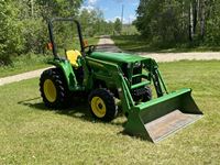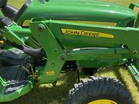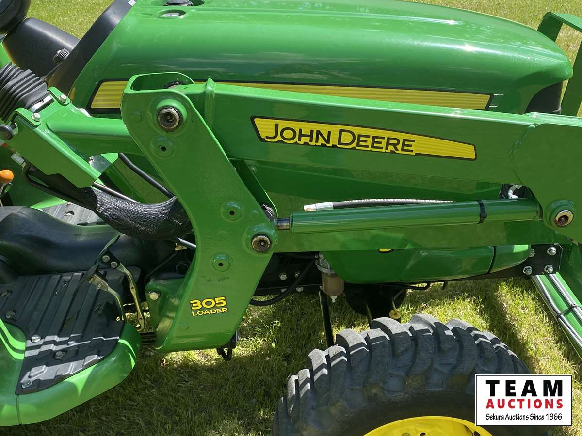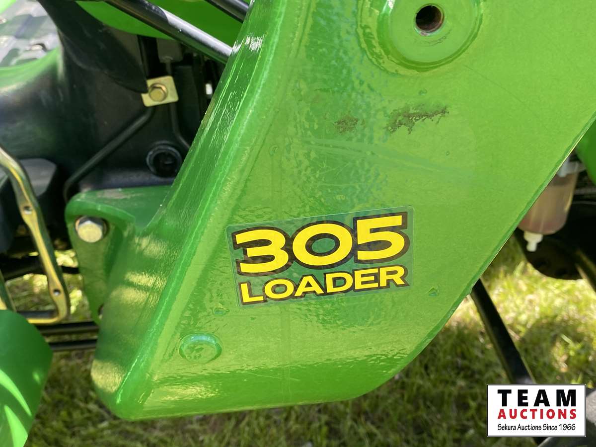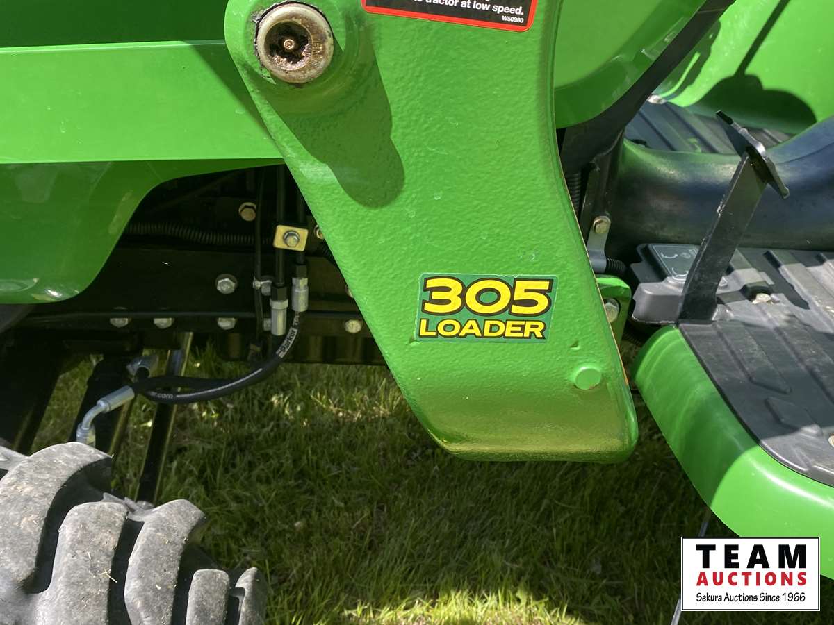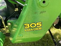 John Deere 305 loader, Q/A bucket, Yanmar, 1.6 L, 3 cylinder, 31 HP, diesel, hydrostatic, 3 PT hitch, 540 PTO