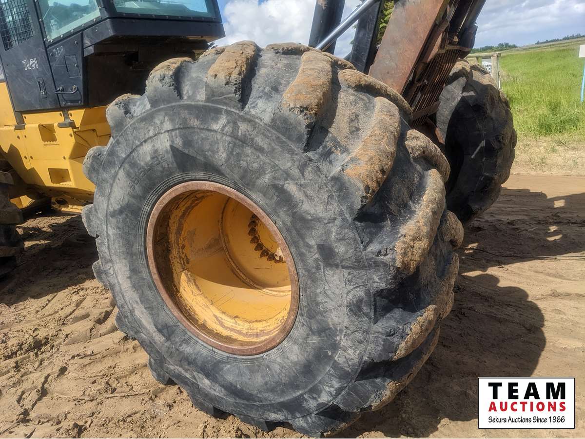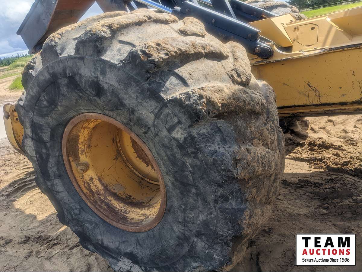 decking blade, sweeps, A/C cab, air ride seat, Caterpillar grapple, double arch, Eberspacher engine heater, DH35.5-32 tires