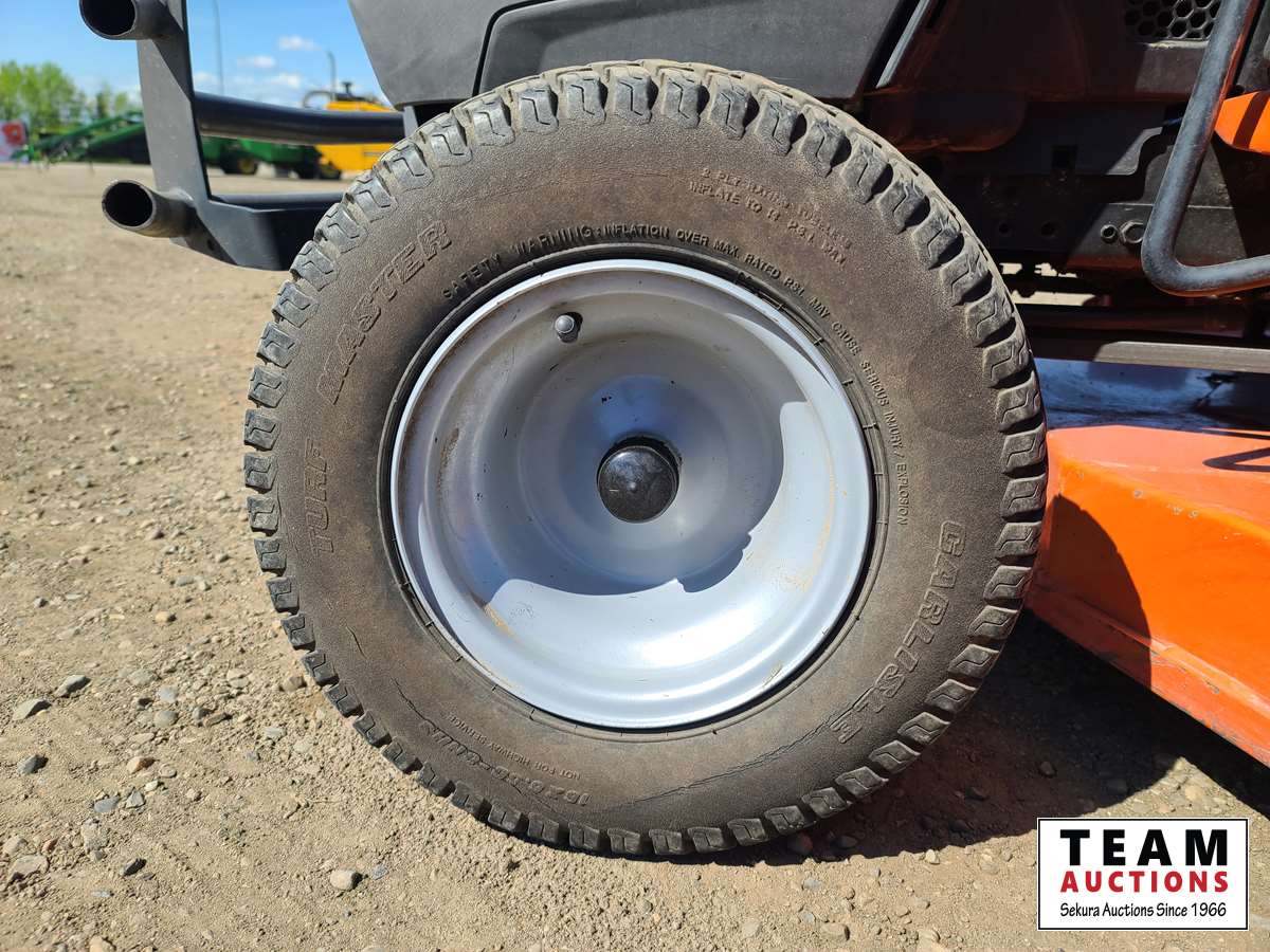 Kawasaki 24 HP engine, hydrostatic transmission, 16 x 6.50-8 front tires, 23 x 10.50-12 rear tires