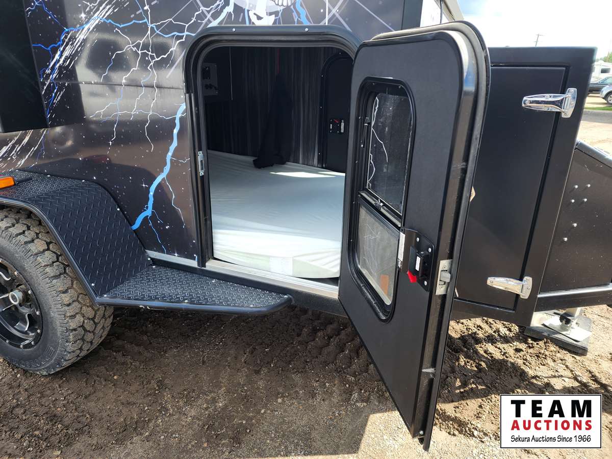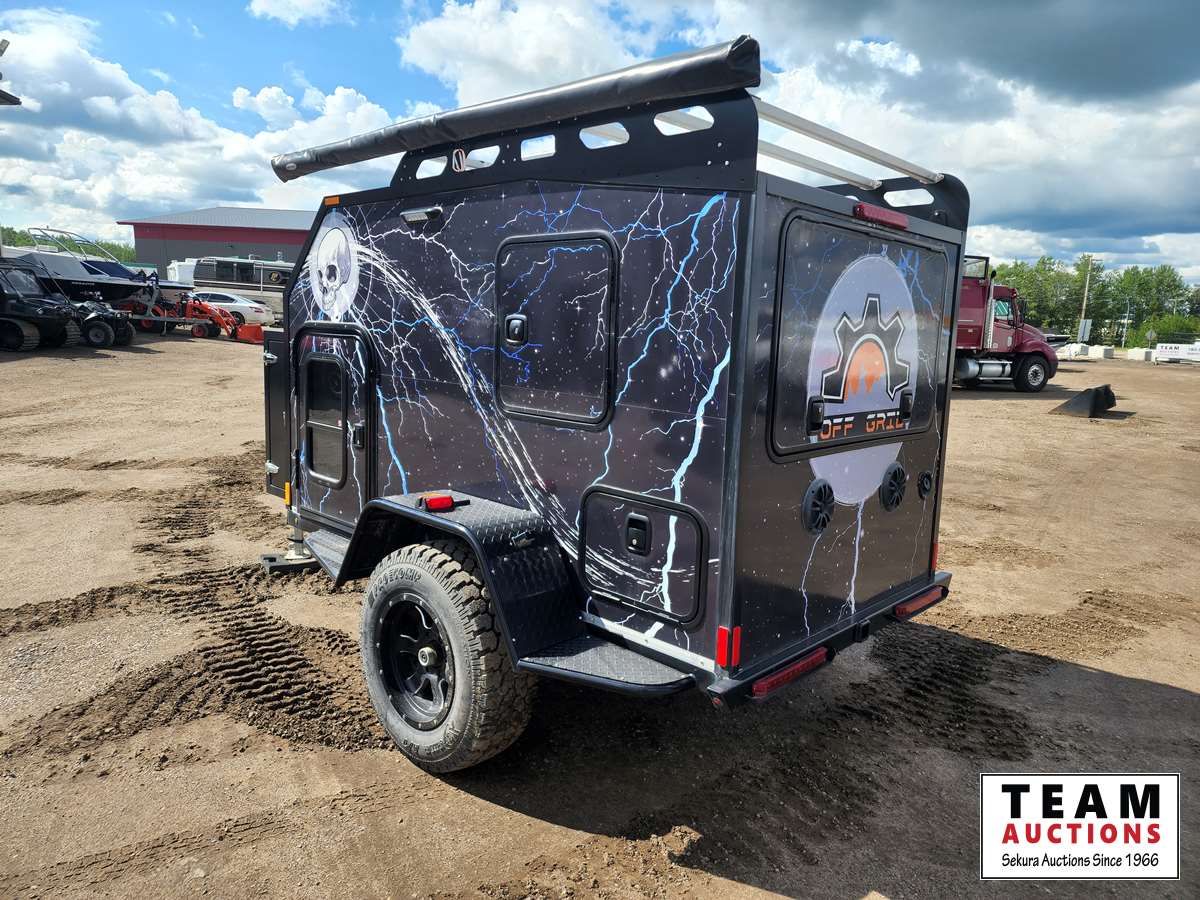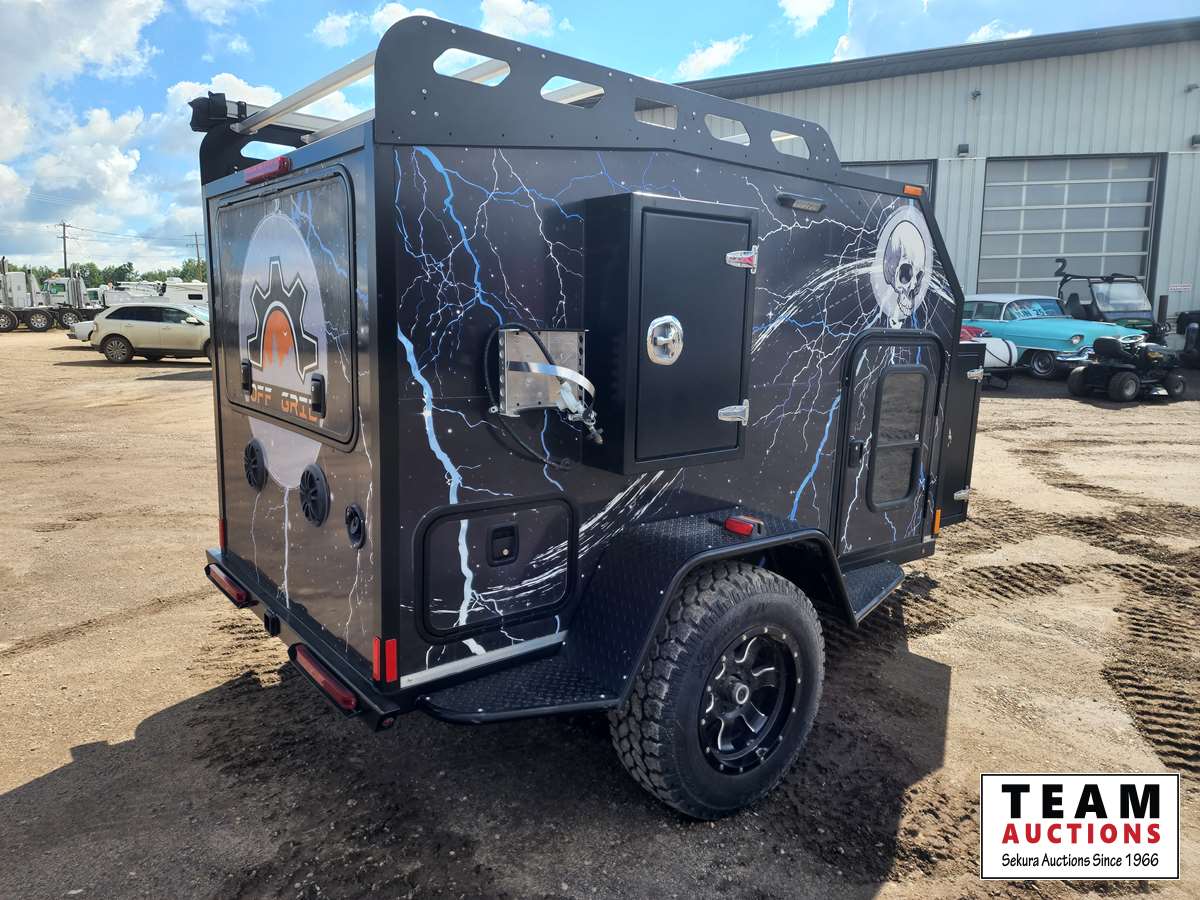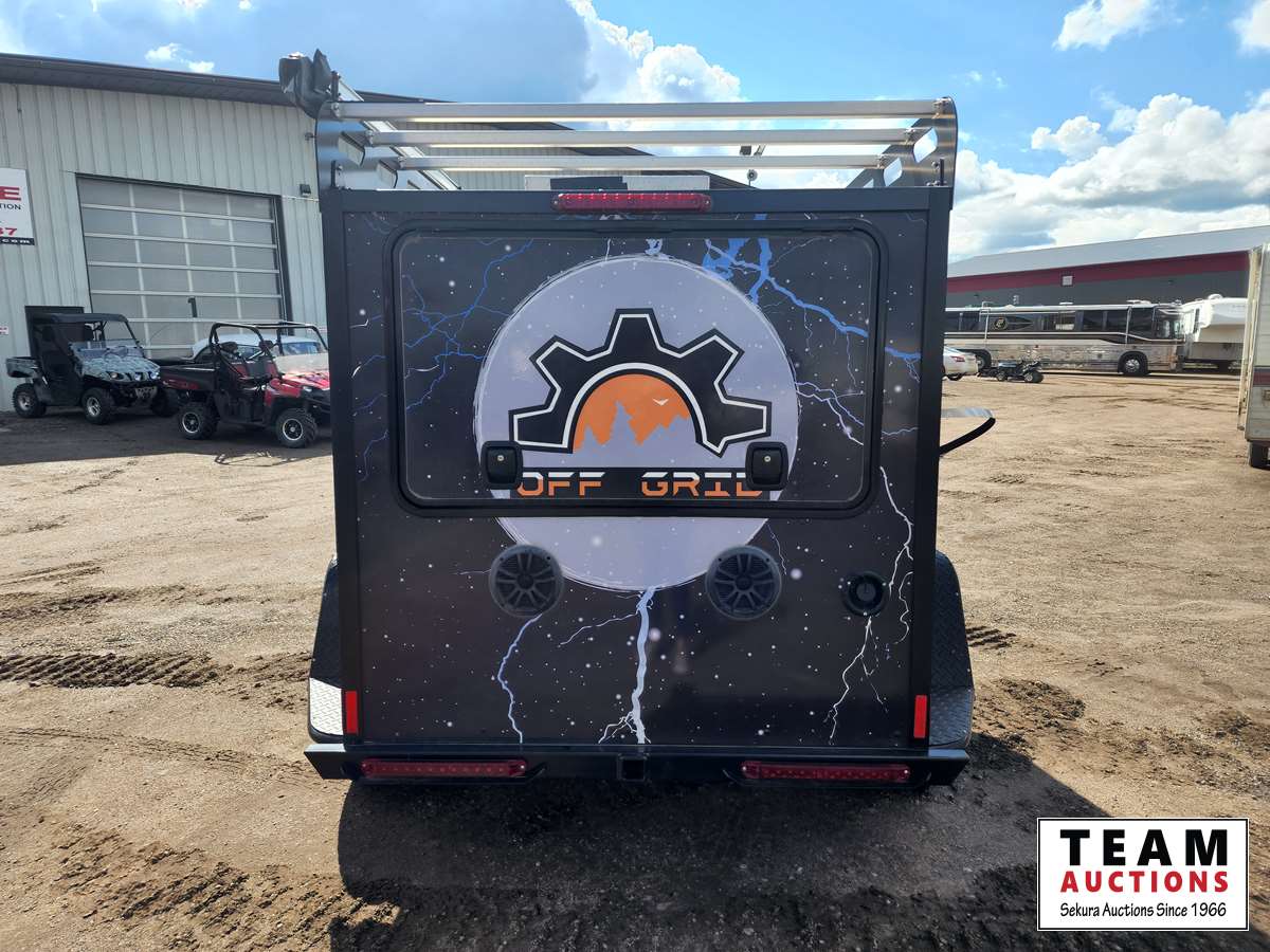 Queen bed, stove, kitchen sink, fridge, outdoor shower, Solar powered charging system w/inverter, 10 gal water, Boss stereo system, independent suspension, front and rear storage, 2365/70R17 tires