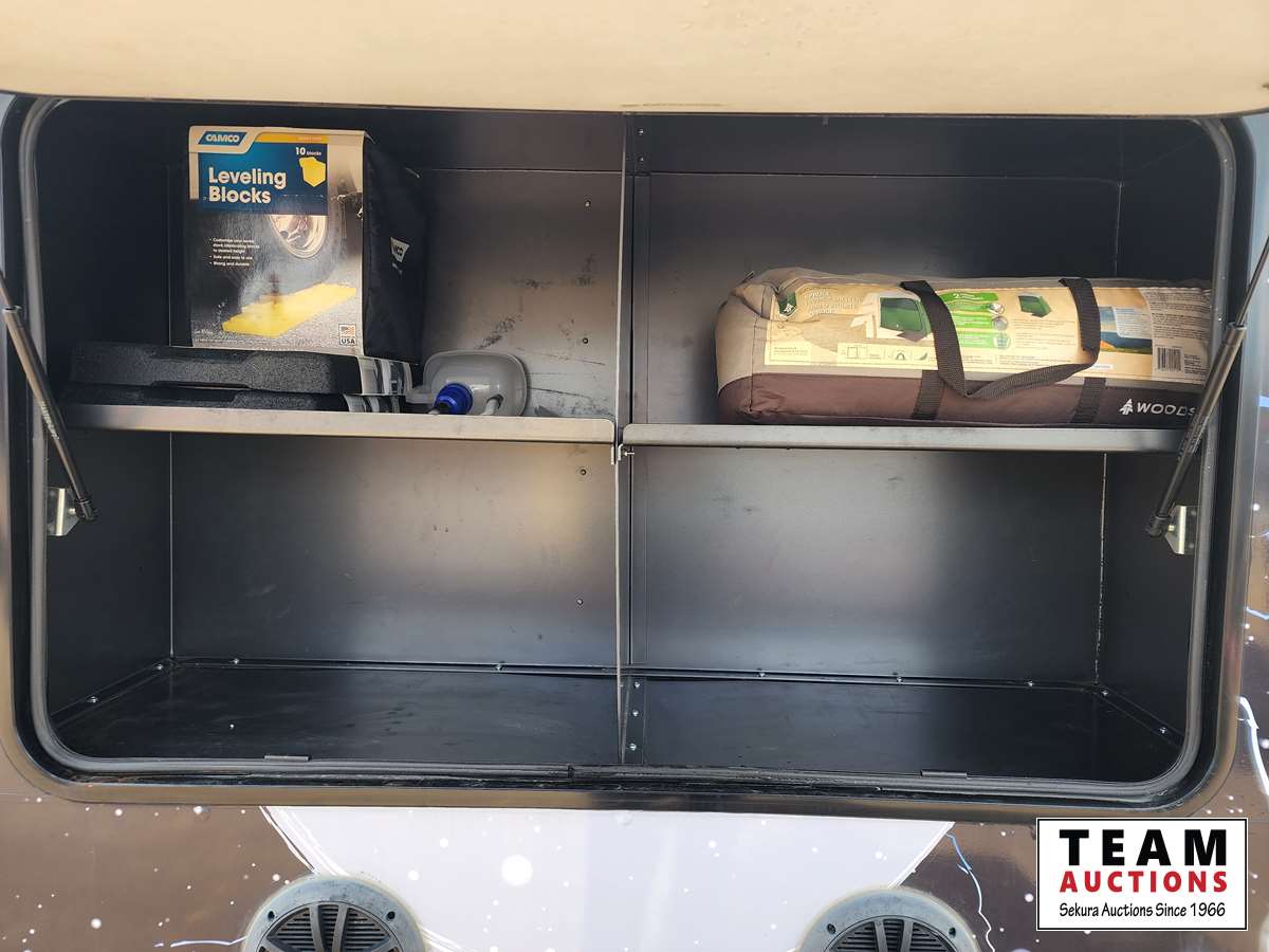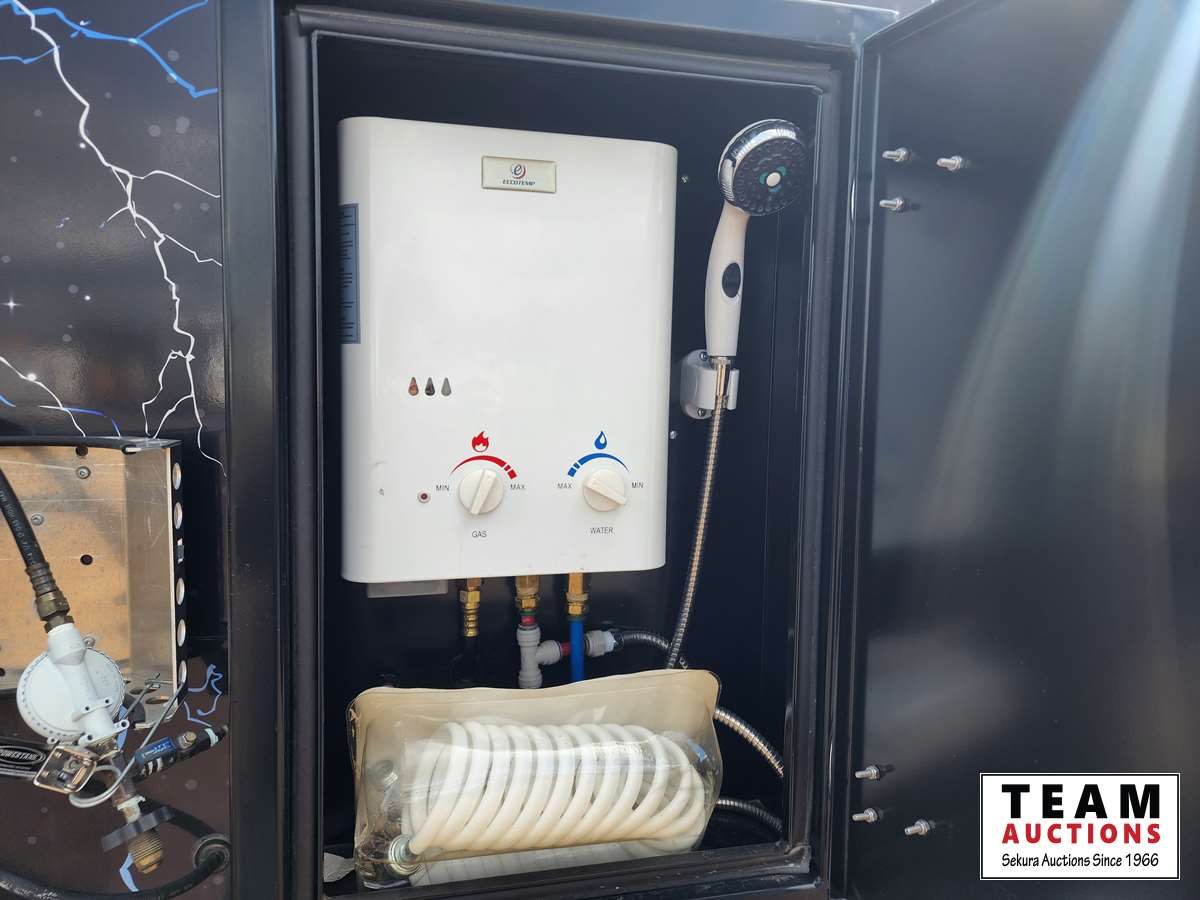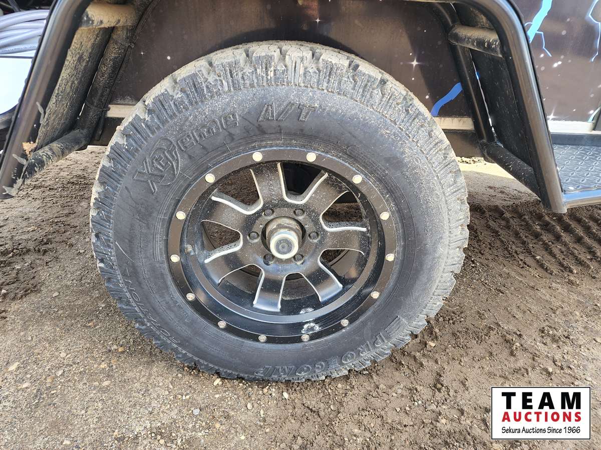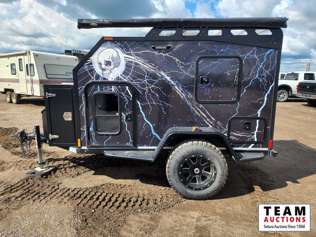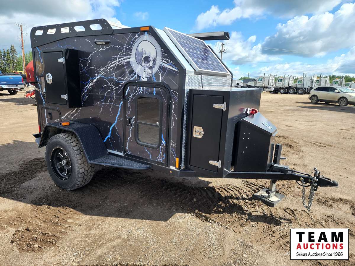 Queen bed, stove, kitchen sink, fridge, outdoor shower, Solar powered charging system w/inverter, 10 gal water, Boss stereo system, independent suspension, front and rear storage, 2365/70R17 tires