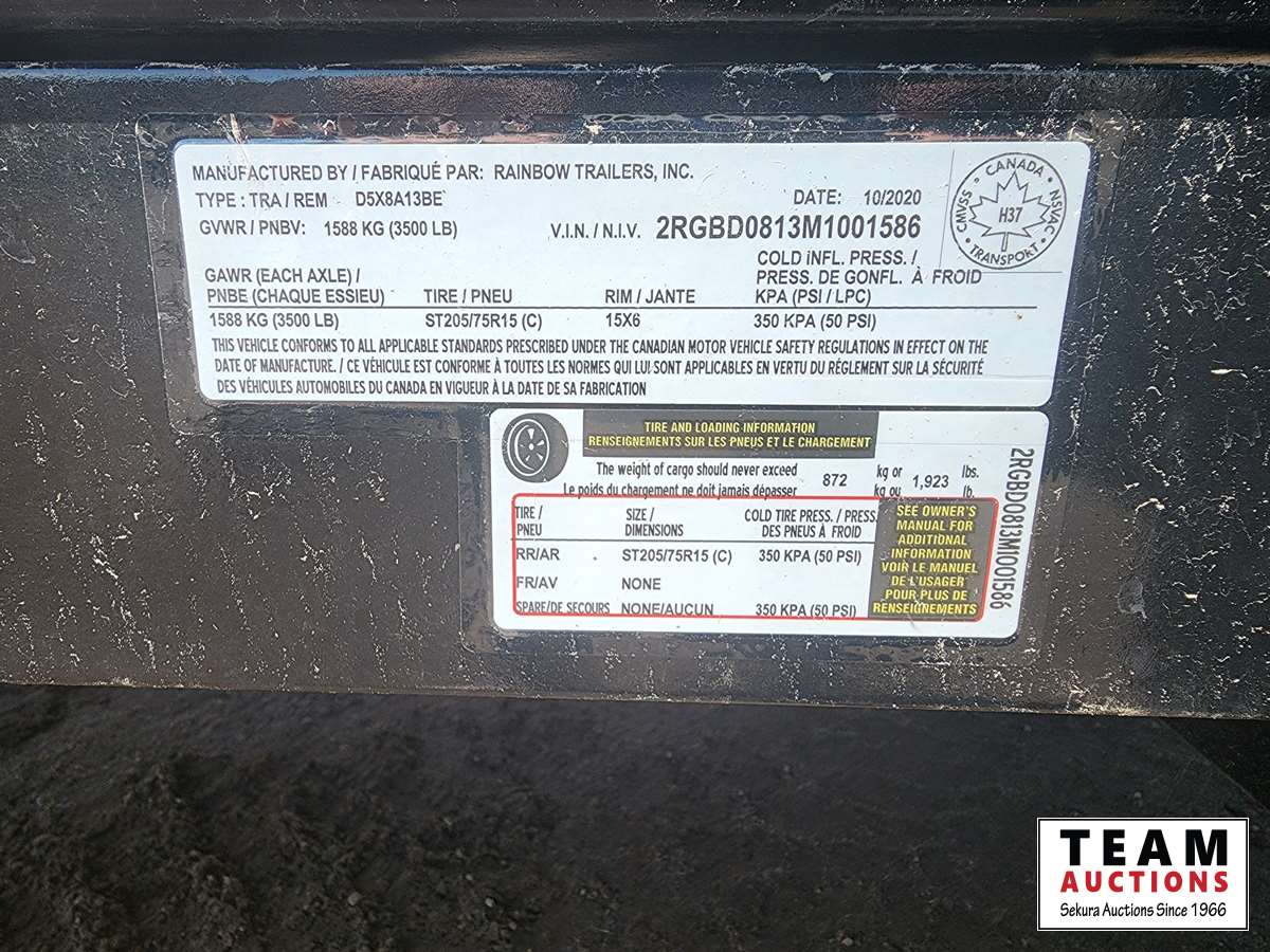 449 2021 Rainbow 8 Ft S/A Dump Trailer (Unused)