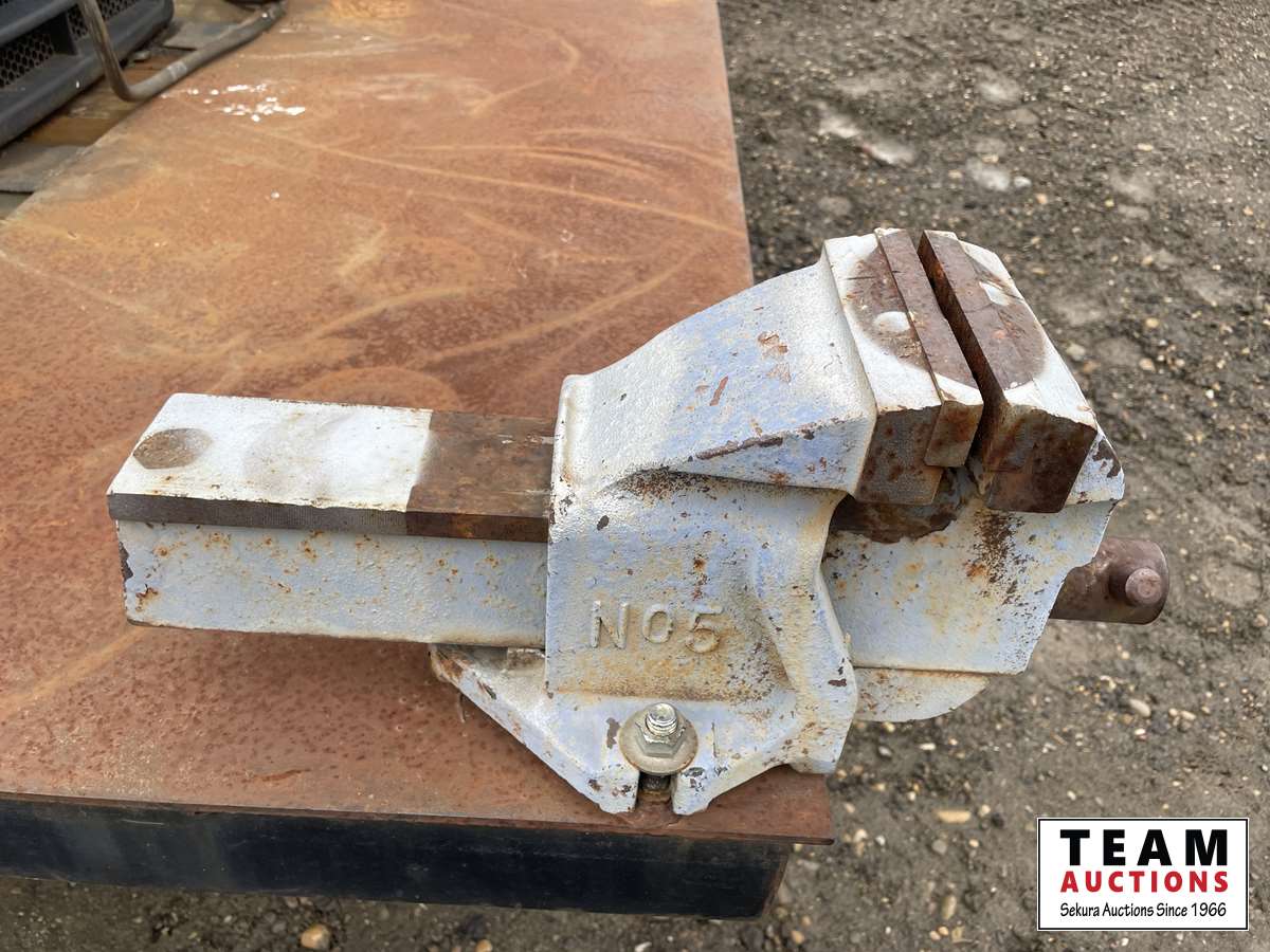 Tool boxes, vise, welding cable reels, hose reel, 2 inch tongue, torsion axles, new battery