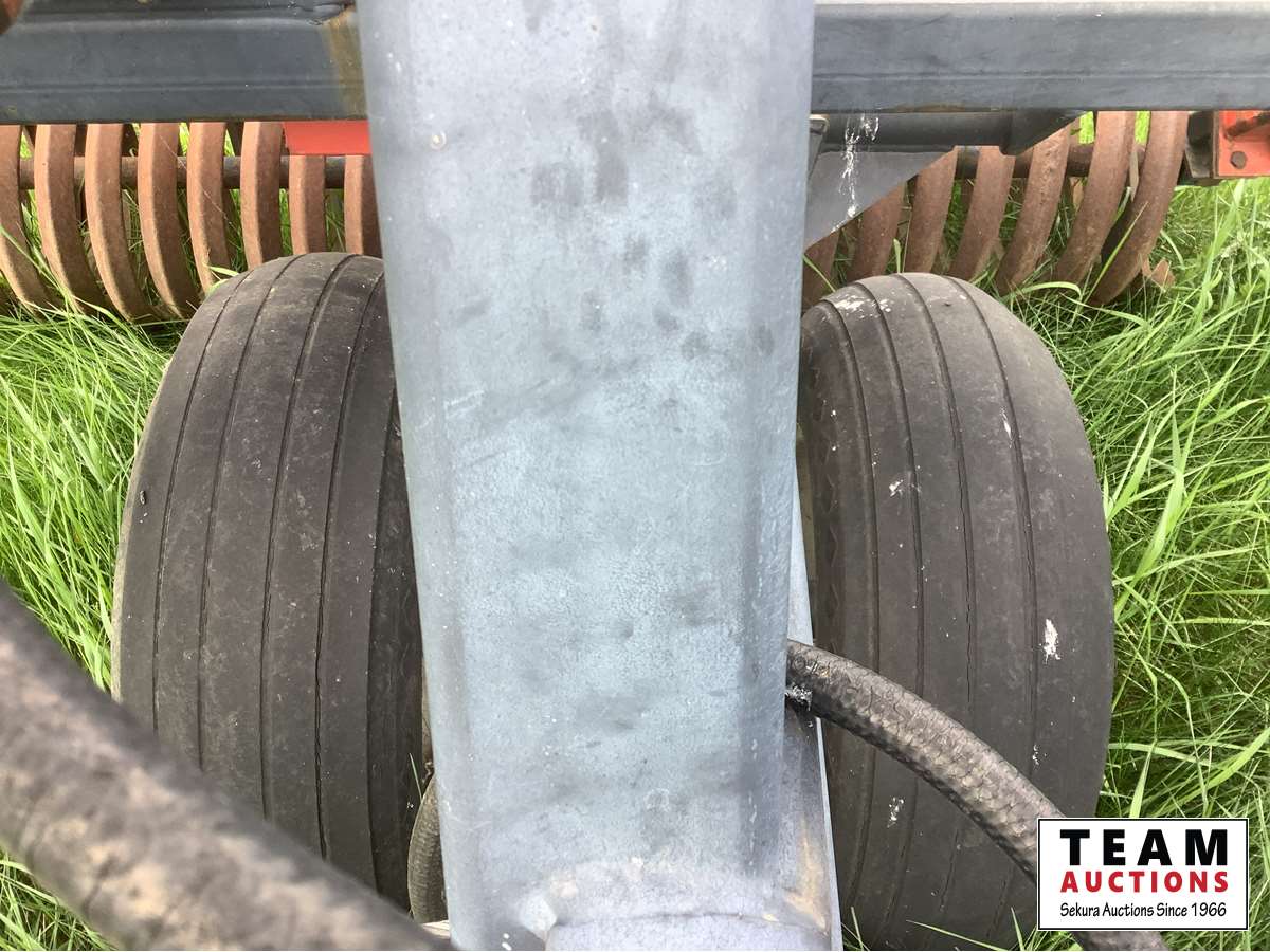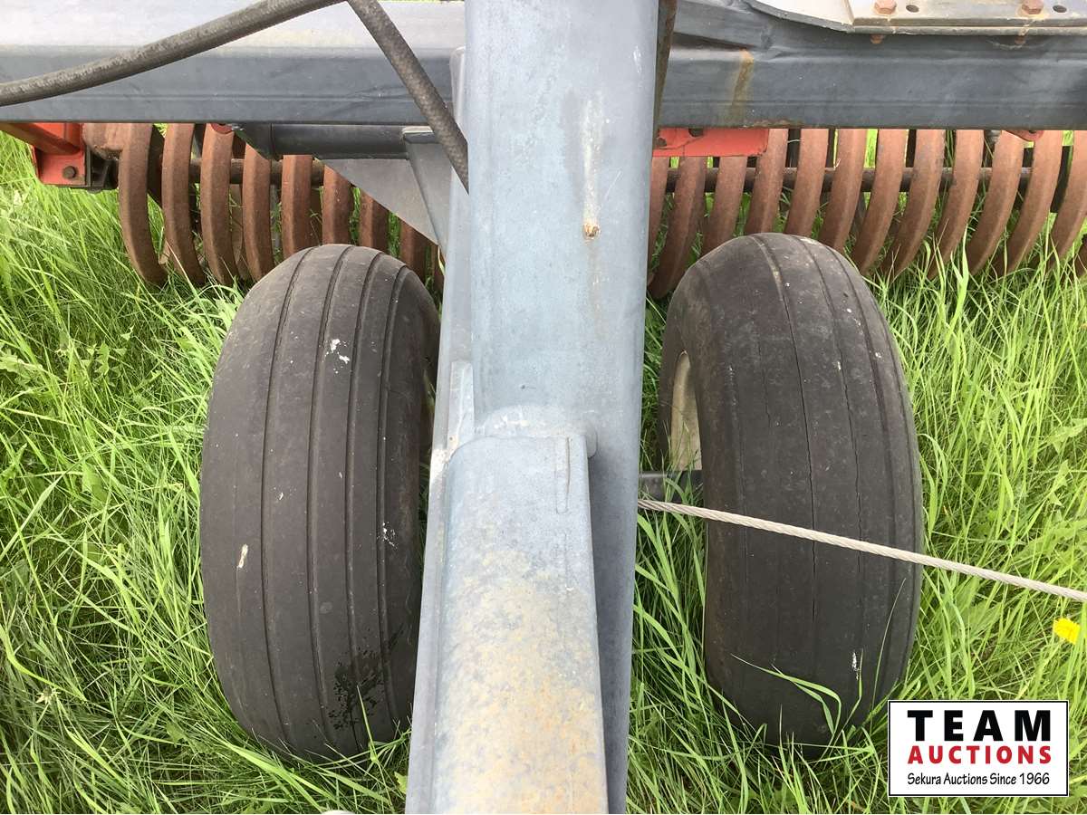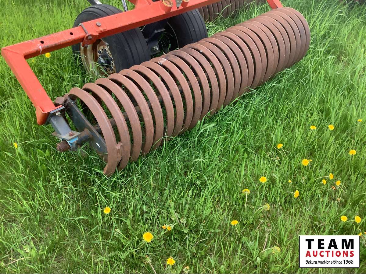 42 ft wide, double coil packers, telescopic hitch, all folded up in transport ready to tow away