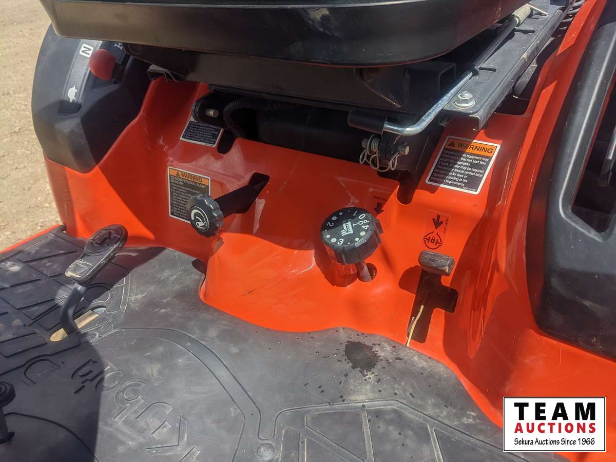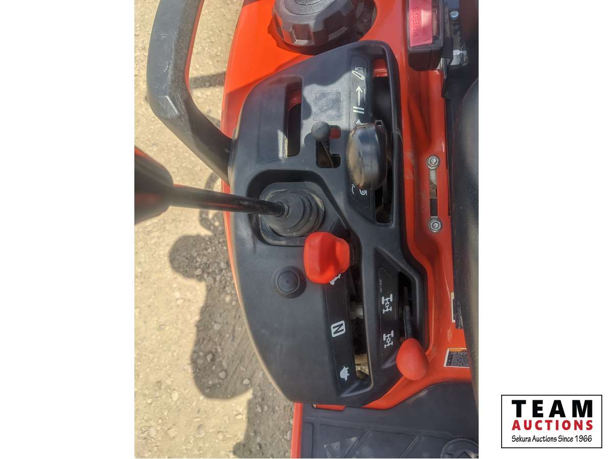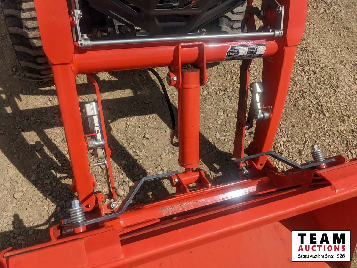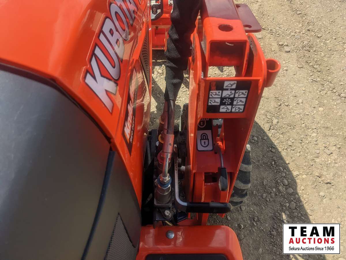 Kubota LA344 loader, 48 inch bucket, Q/A coupler, ROPS, 540 PTO, 3 PT, diff lock, Land Pride RTR125 rotary tiller, s/n 1211088