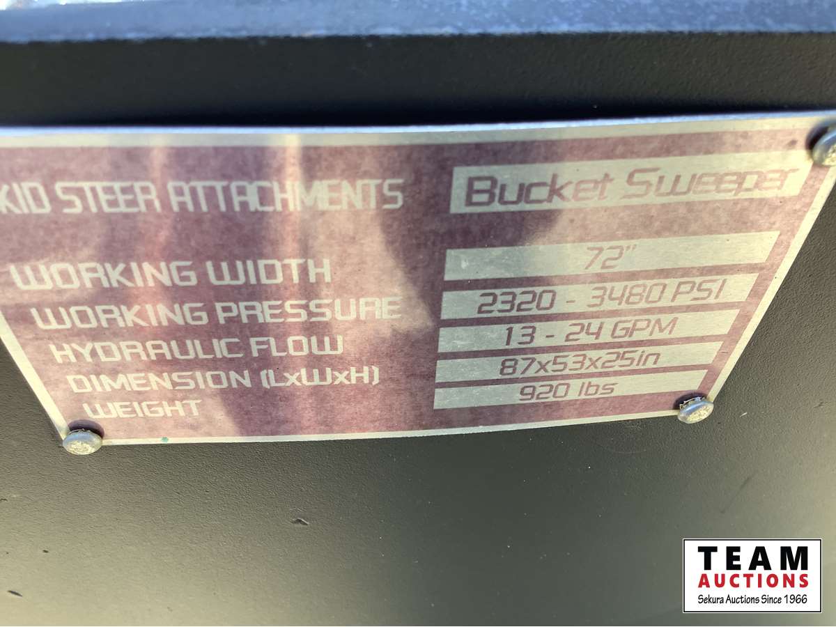 249 TMG Industrial 72 Inch Sweeper w/ Holding Bucket- Skid Steer Attachment (Unused)