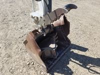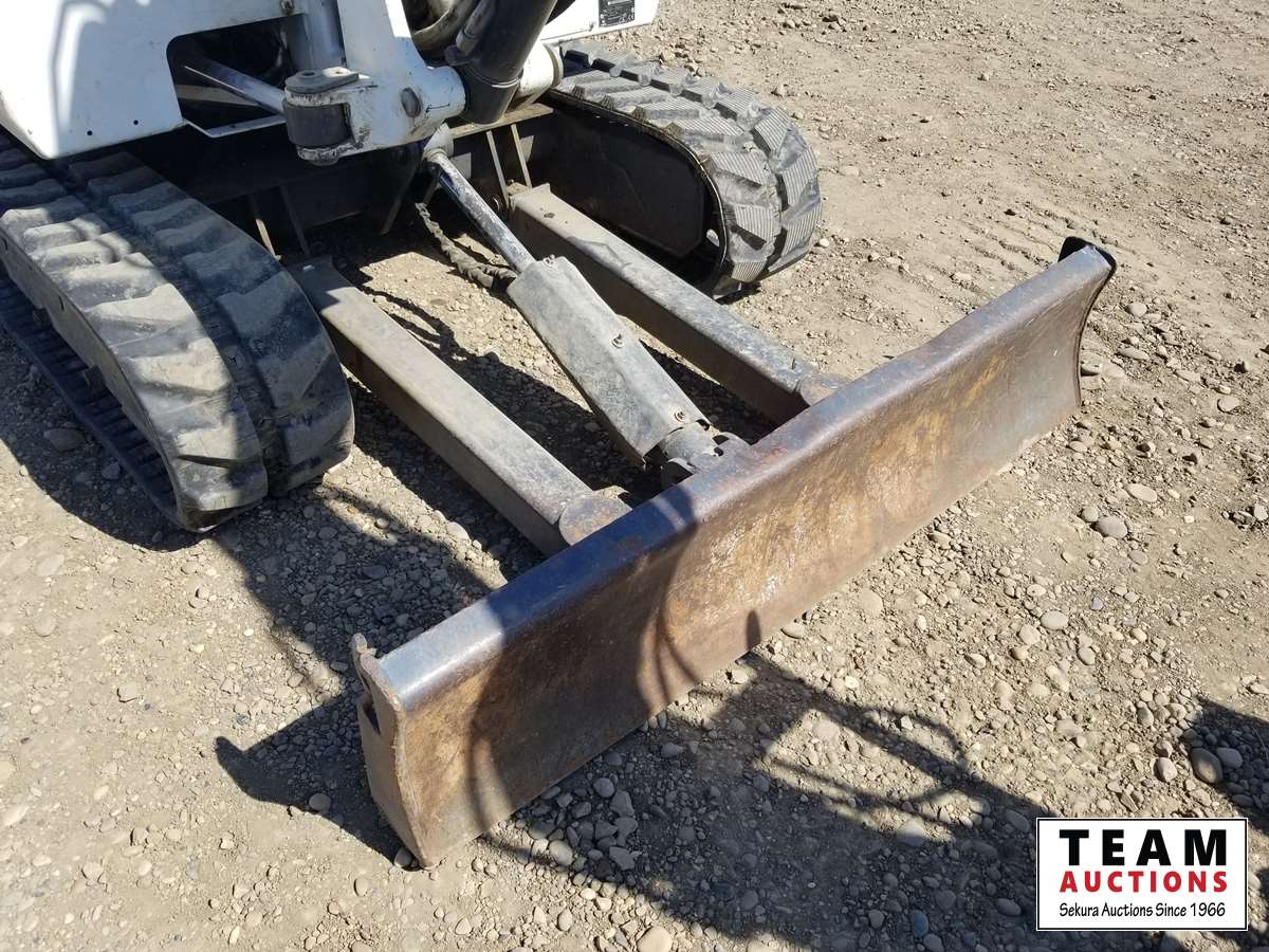Has 60 inch blade and includes: 36 inch clean up bucket, 12 inch digging bucket, manual quick attach, thumb, (1) new track and (1) 75% track, less than 50 hrs on brand new hydrauilic pump