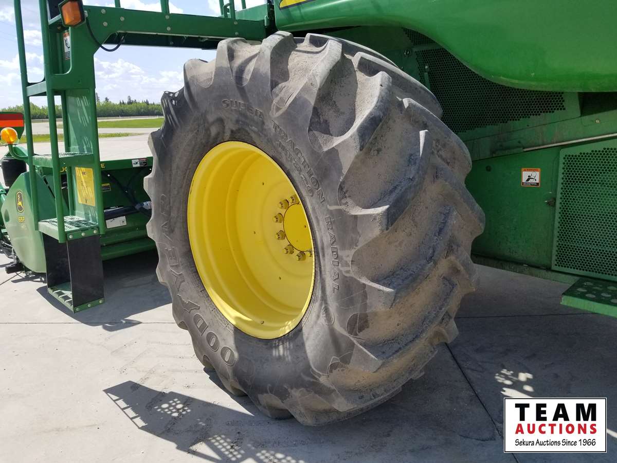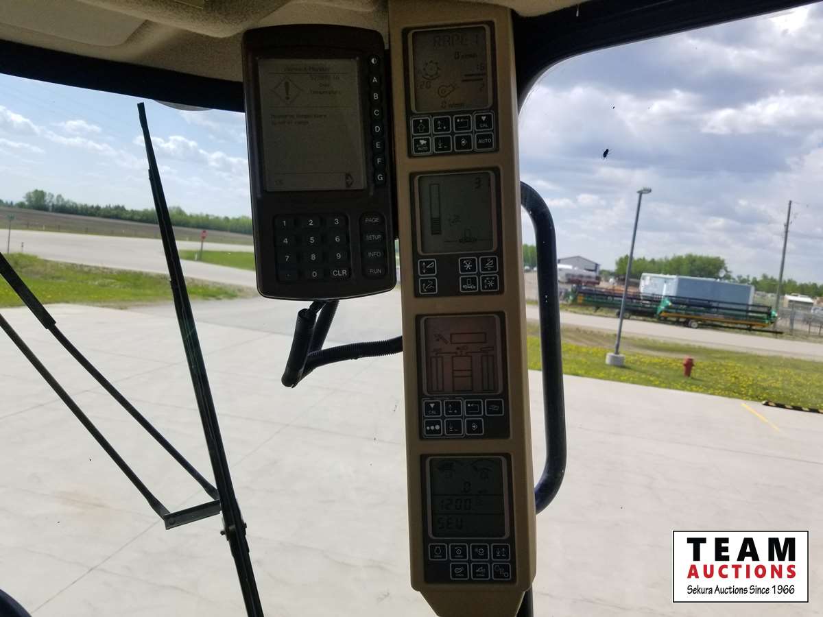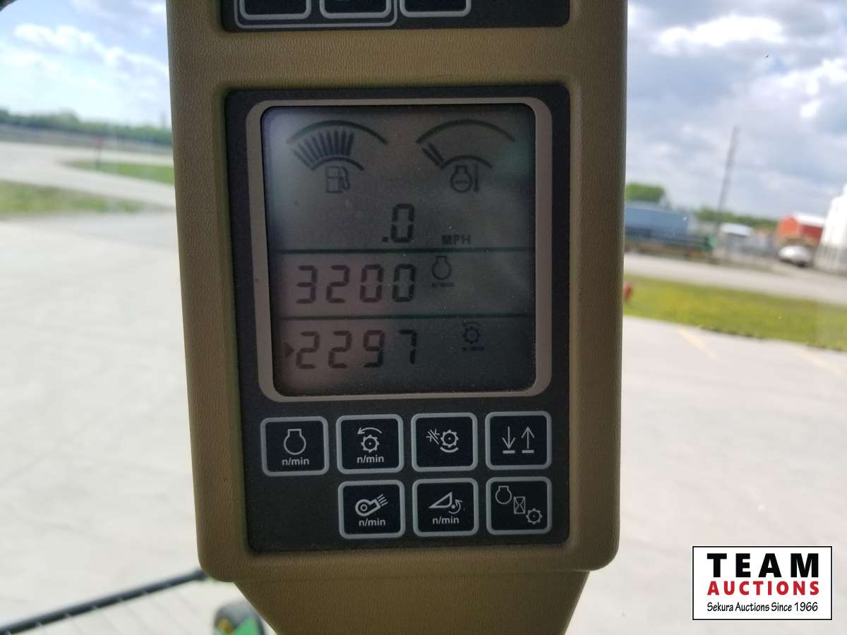 615P 15 ft pickup header, s/n 1H00615PTD0755658, reverser, variable speed reel, auto header height control, fore & aft, rock trap, grain tank extensions, bullet rotor, fine cut chopper, chaff spreader, yield & moisture, Lankota auger extension, 800/70R38 front (70%), 600/65R28 rear (70%), 2297 seperator hrs showing