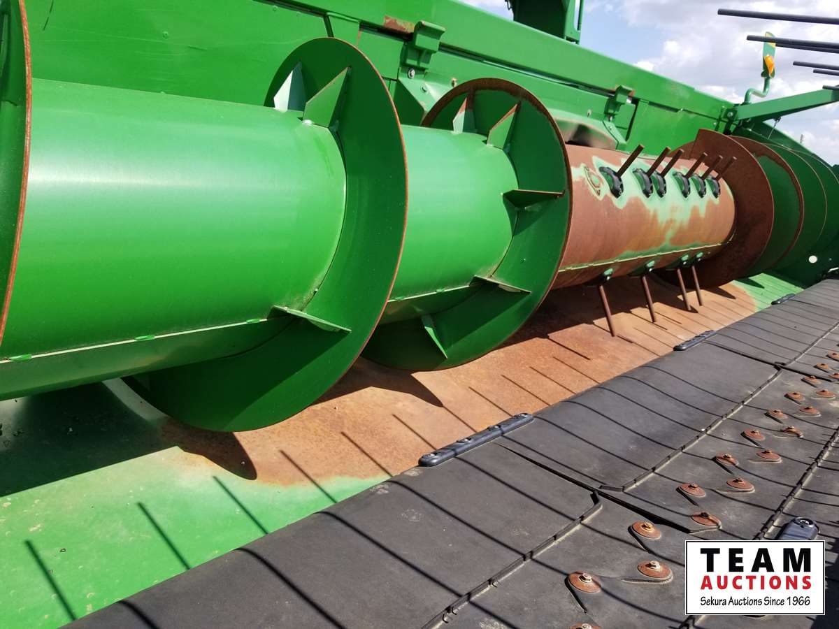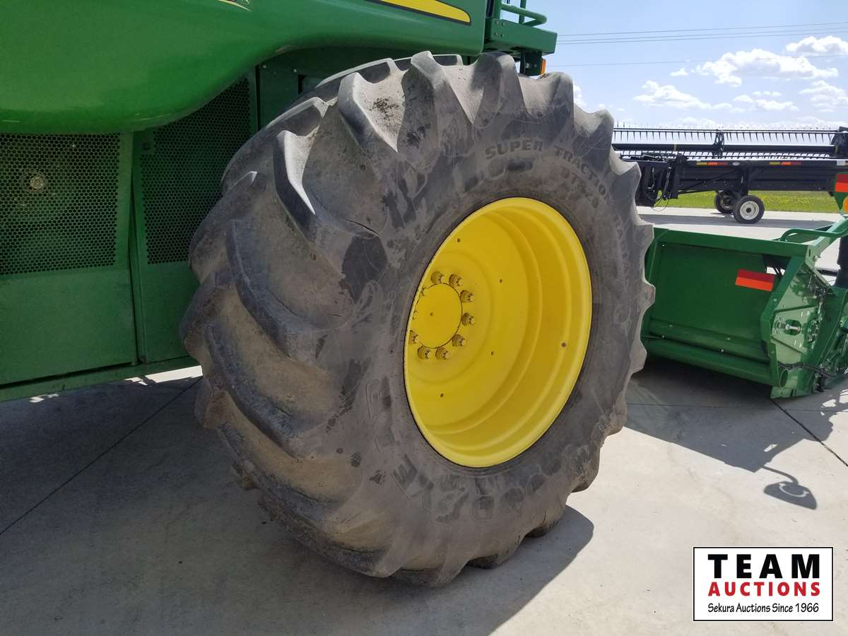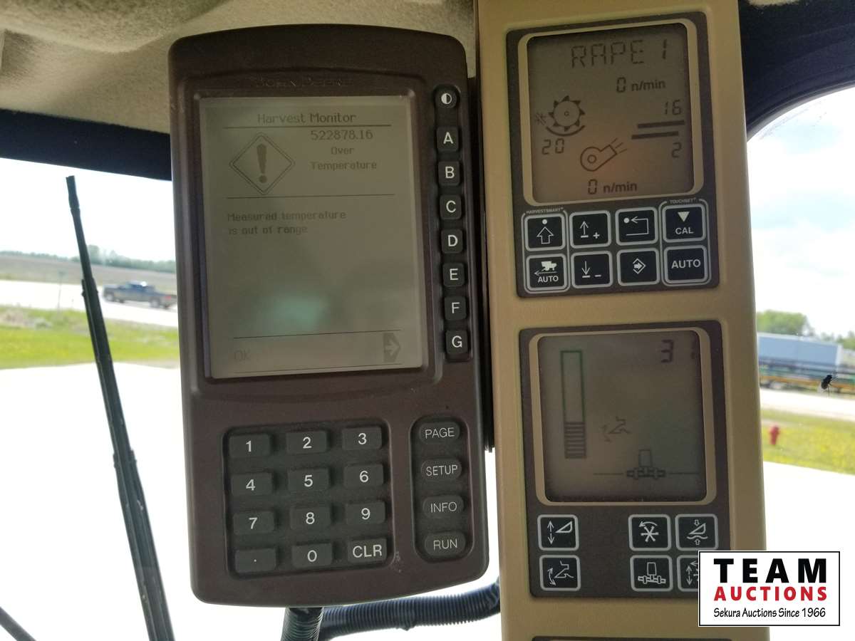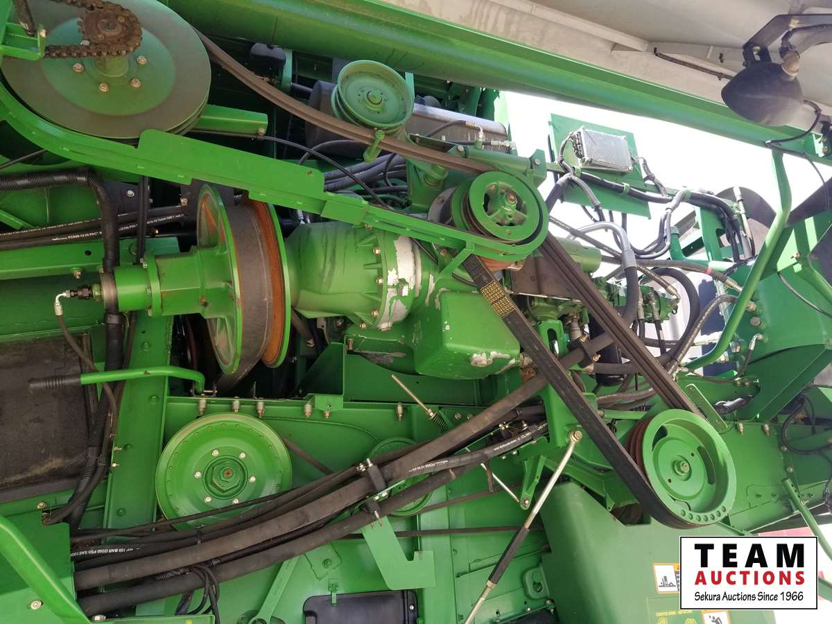 615P 15 ft pickup header, s/n 1H00615PTD0755658, reverser, variable speed reel, auto header height control, fore & aft, rock trap, grain tank extensions, bullet rotor, fine cut chopper, chaff spreader, yield & moisture, Lankota auger extension, 800/70R38 front (70%), 600/65R28 rear (70%), 2297 seperator hrs showing