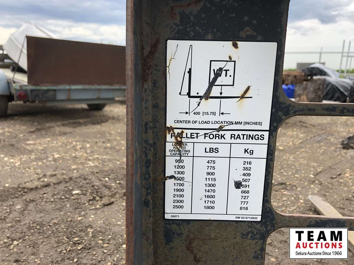 4 cylinder diesel engine, quick attach skid steer attachment, c/w pallet forks, pneumatic tires, 4000 Lb lifting capacity, 17 ft reach