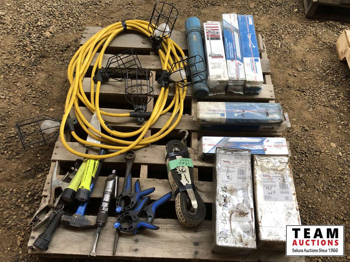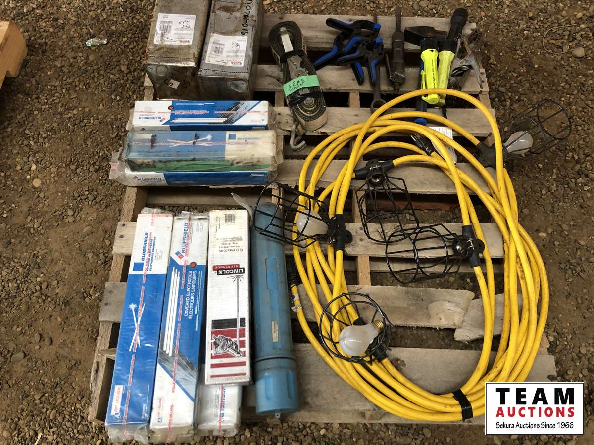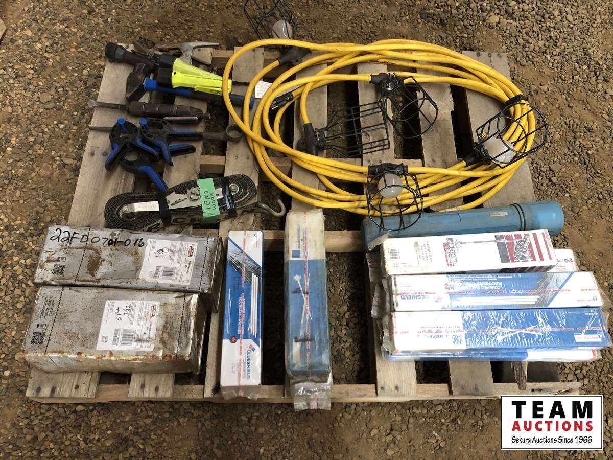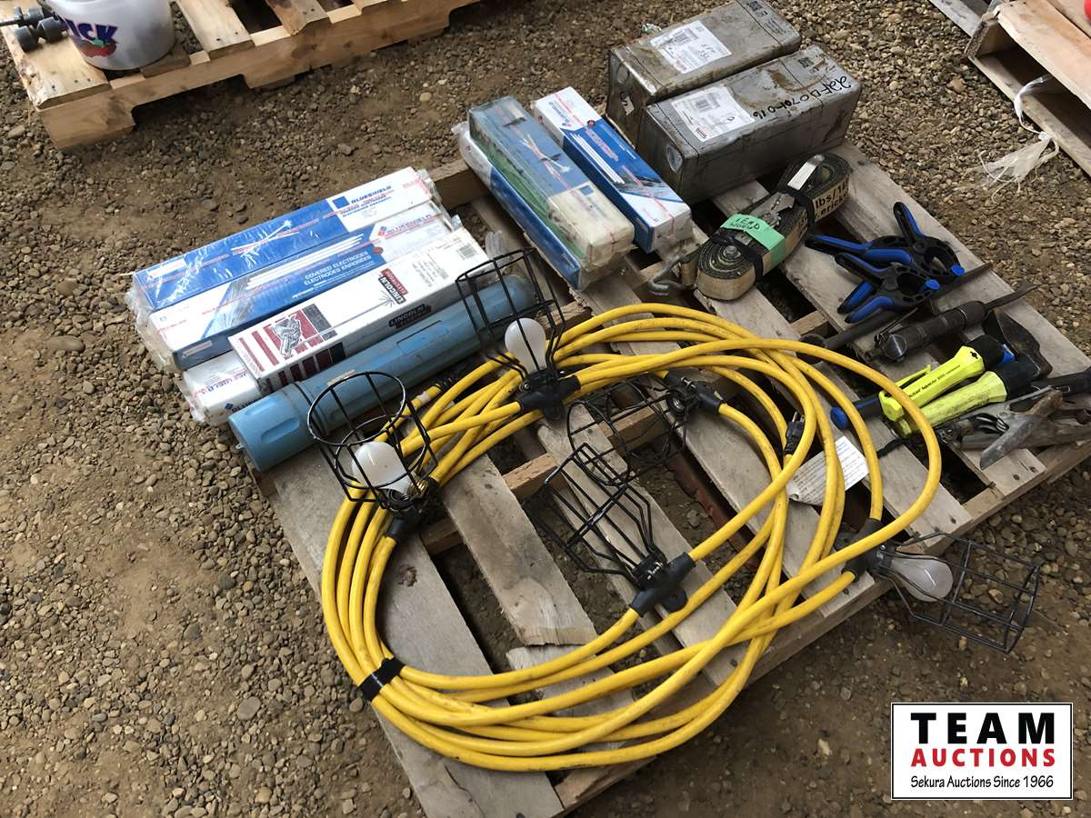 Welding rods, tie down straps, lights, clamps