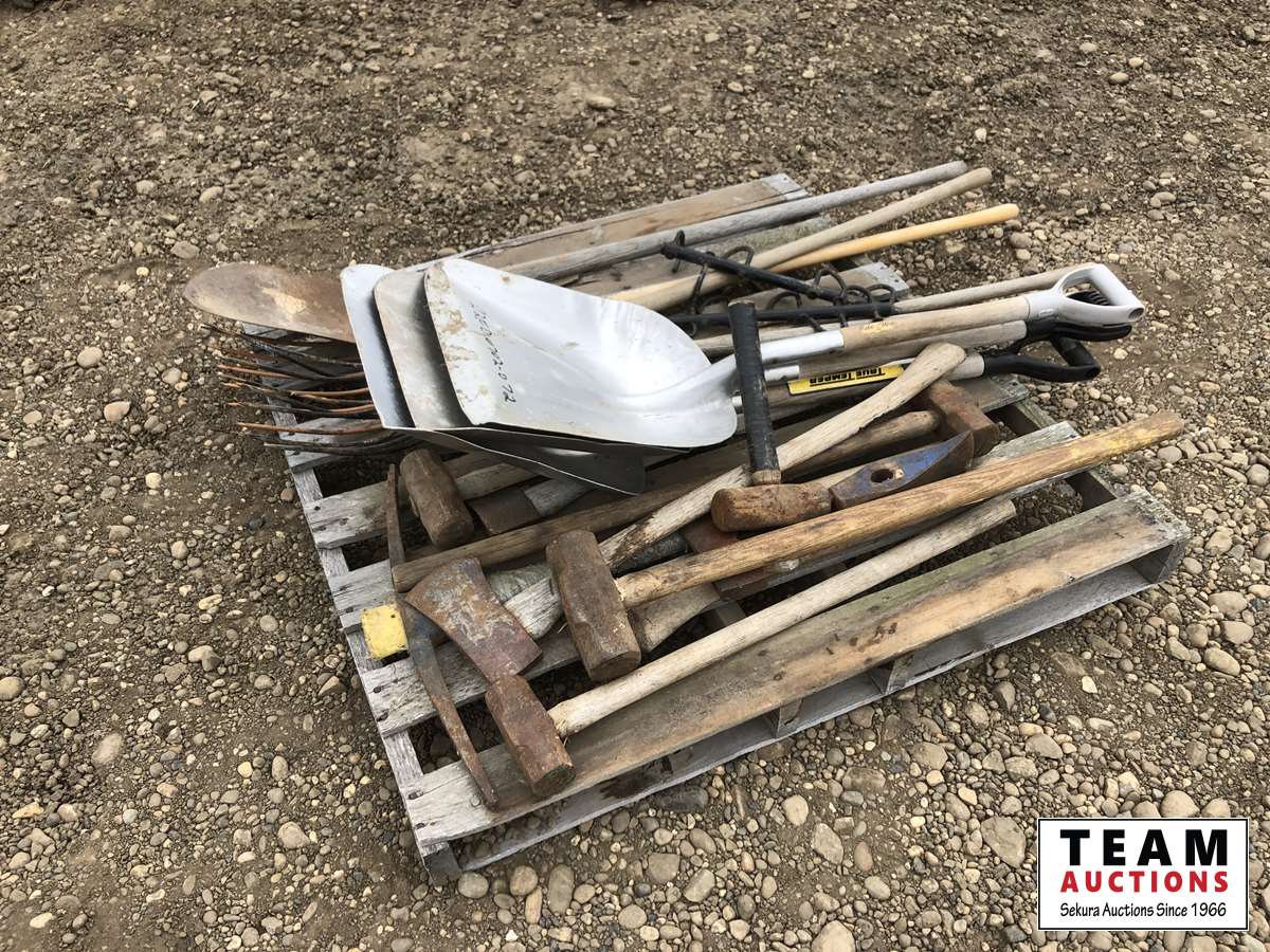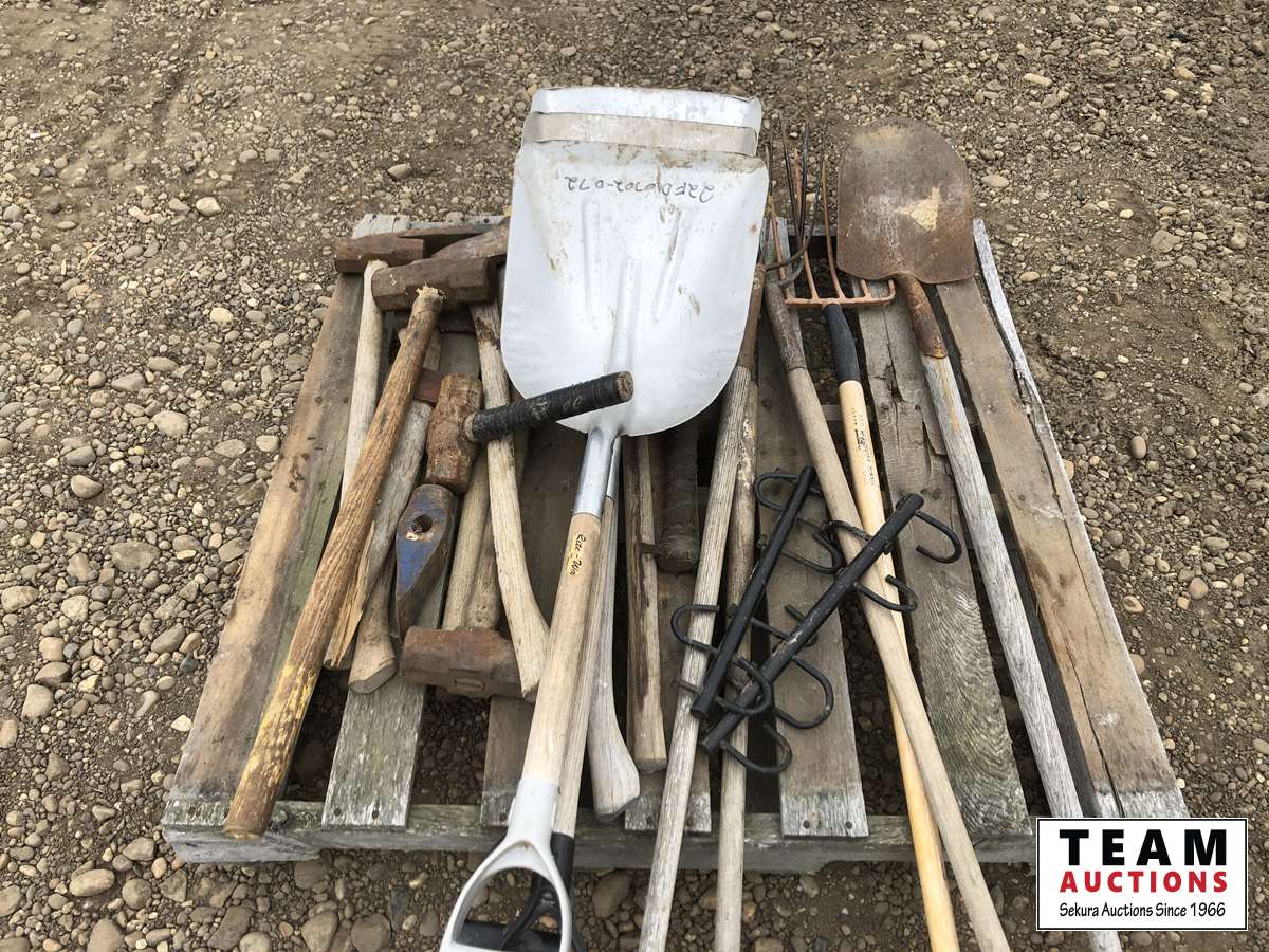 Shovel, axe, hammer, pitch fork