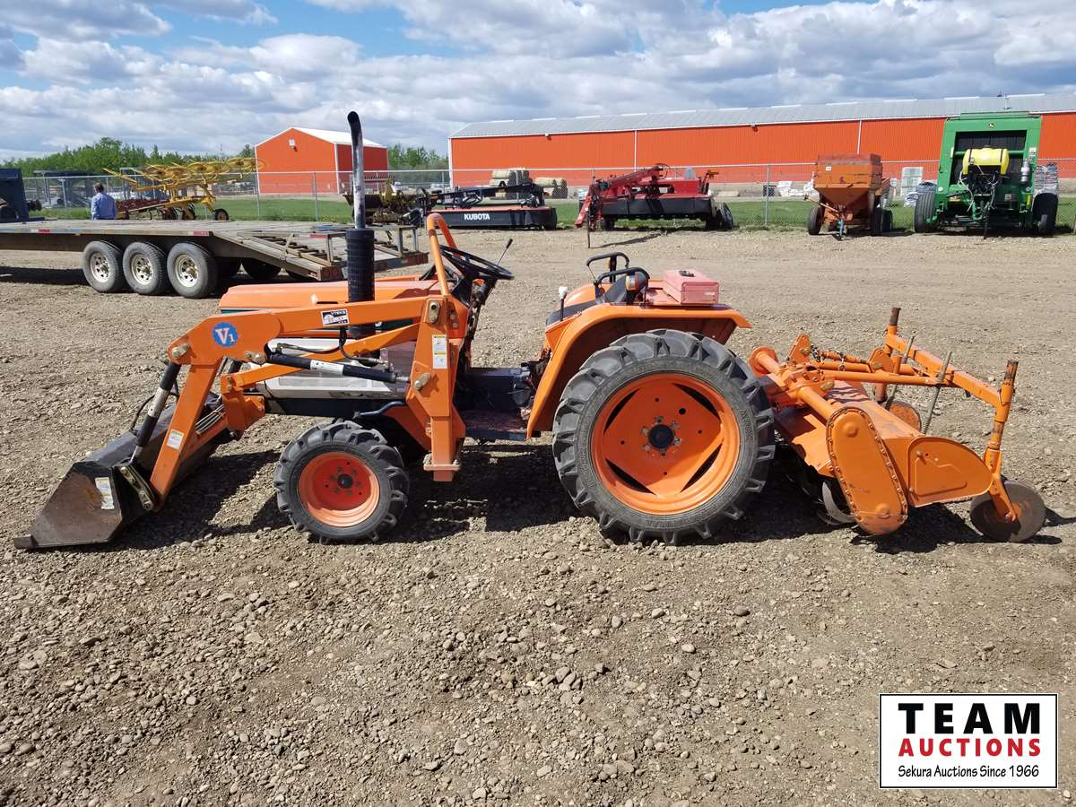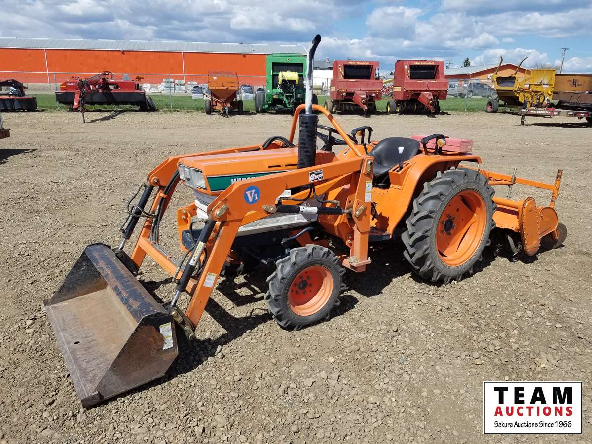 Loader with 48 inch bucket, 52 inch tiller, 540 PTO, (1) hydraulic outlet, 5.00-12 fronts, 8.3-22 rears