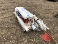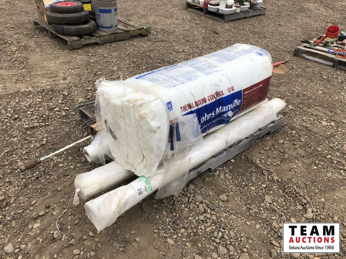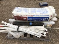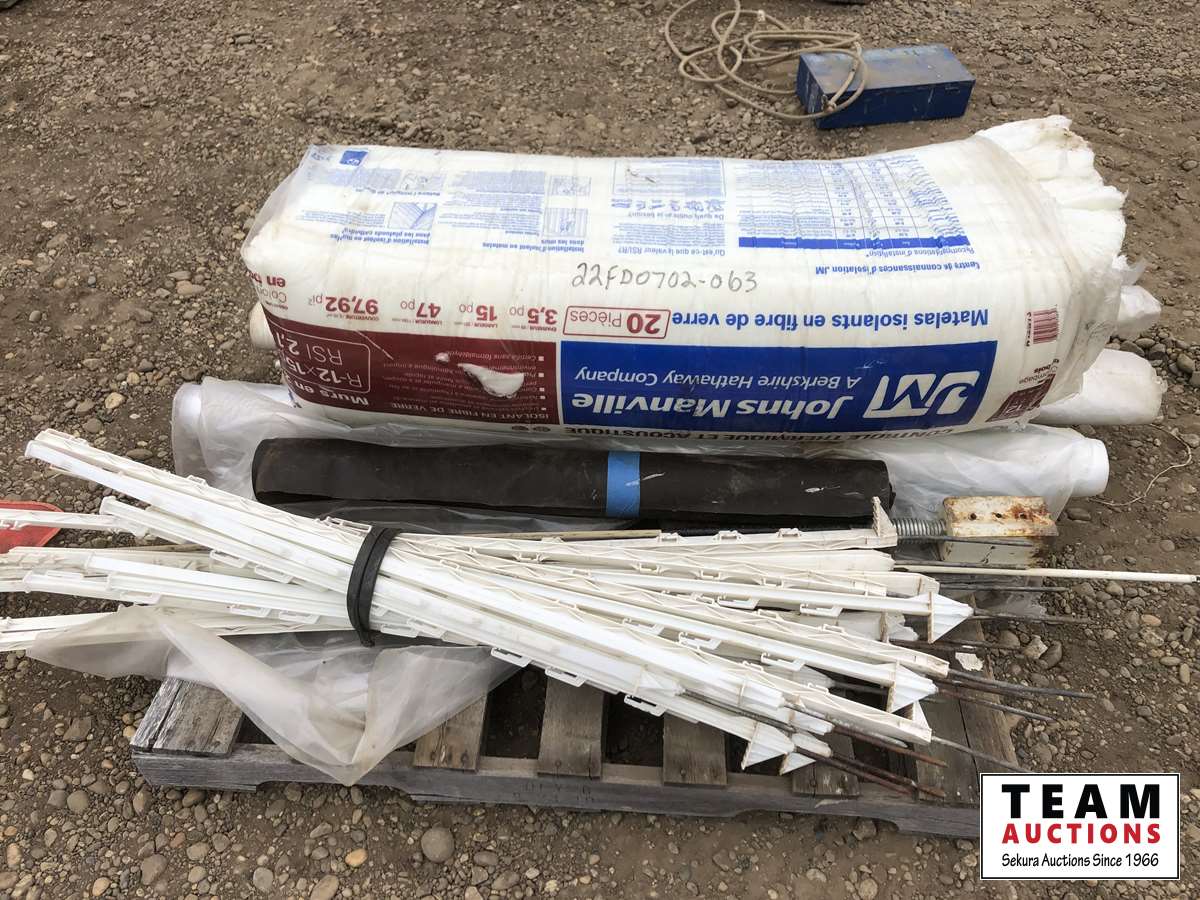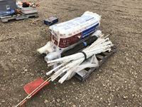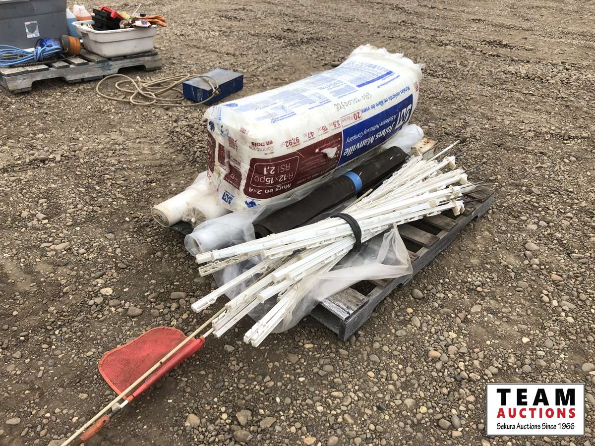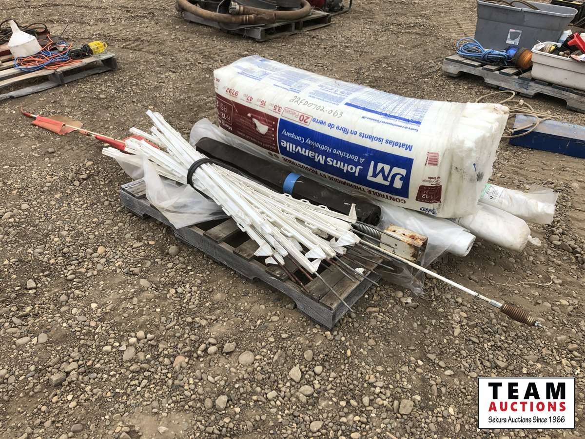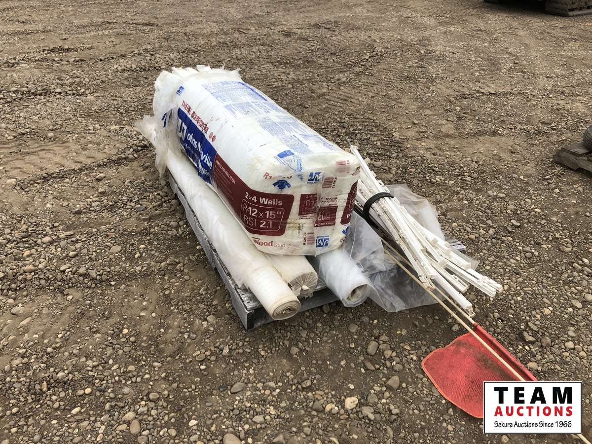 Bundle of R-12 insulation plastic posts, truck flags, rolls of plastic