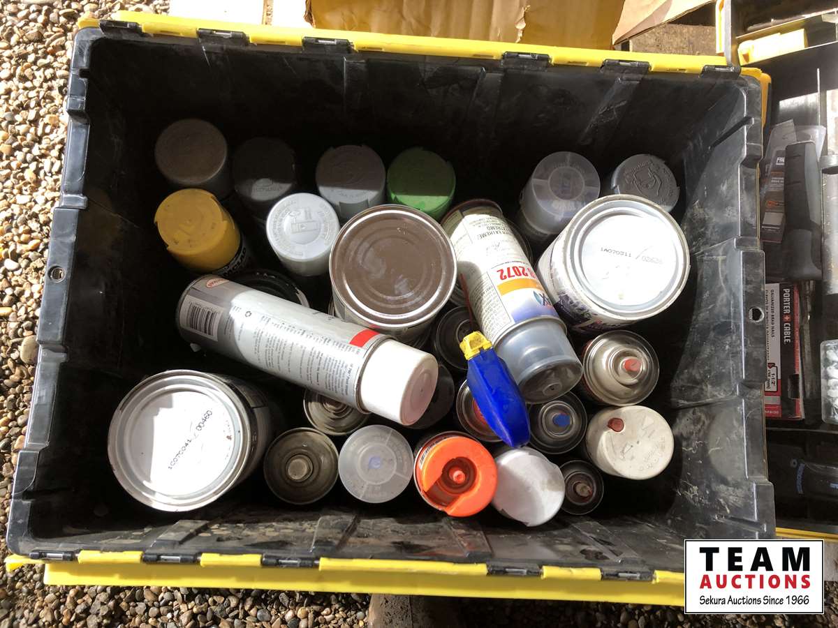 Paint, spray foam, ratchet, pry bar, tools
