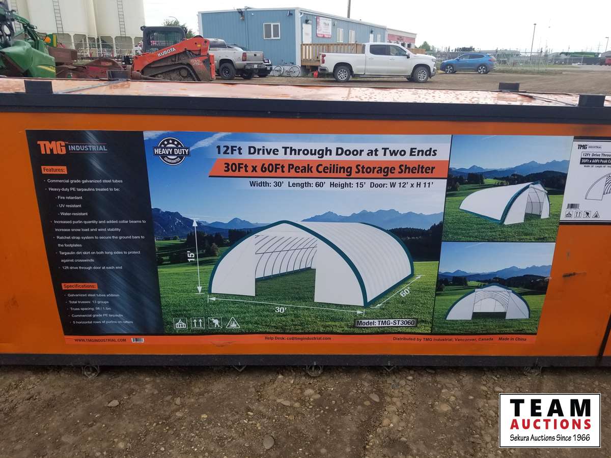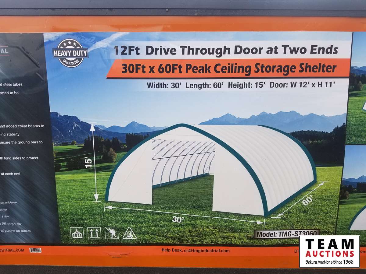 226 TMG Industrial 30 Ft X 60 Ft Peak Roof Shelter (Unused)