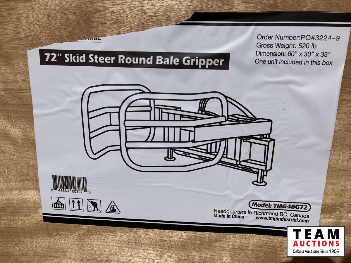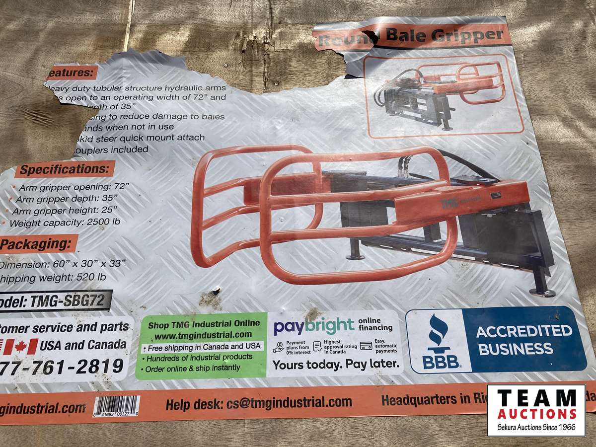 345 TMG Industrial SBG72 72 Inch Bale Gripper-Skid Steer Attachment (Unused)