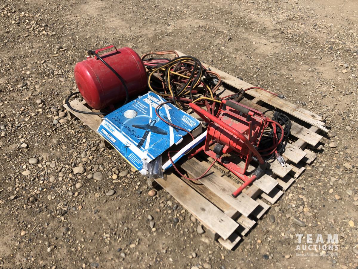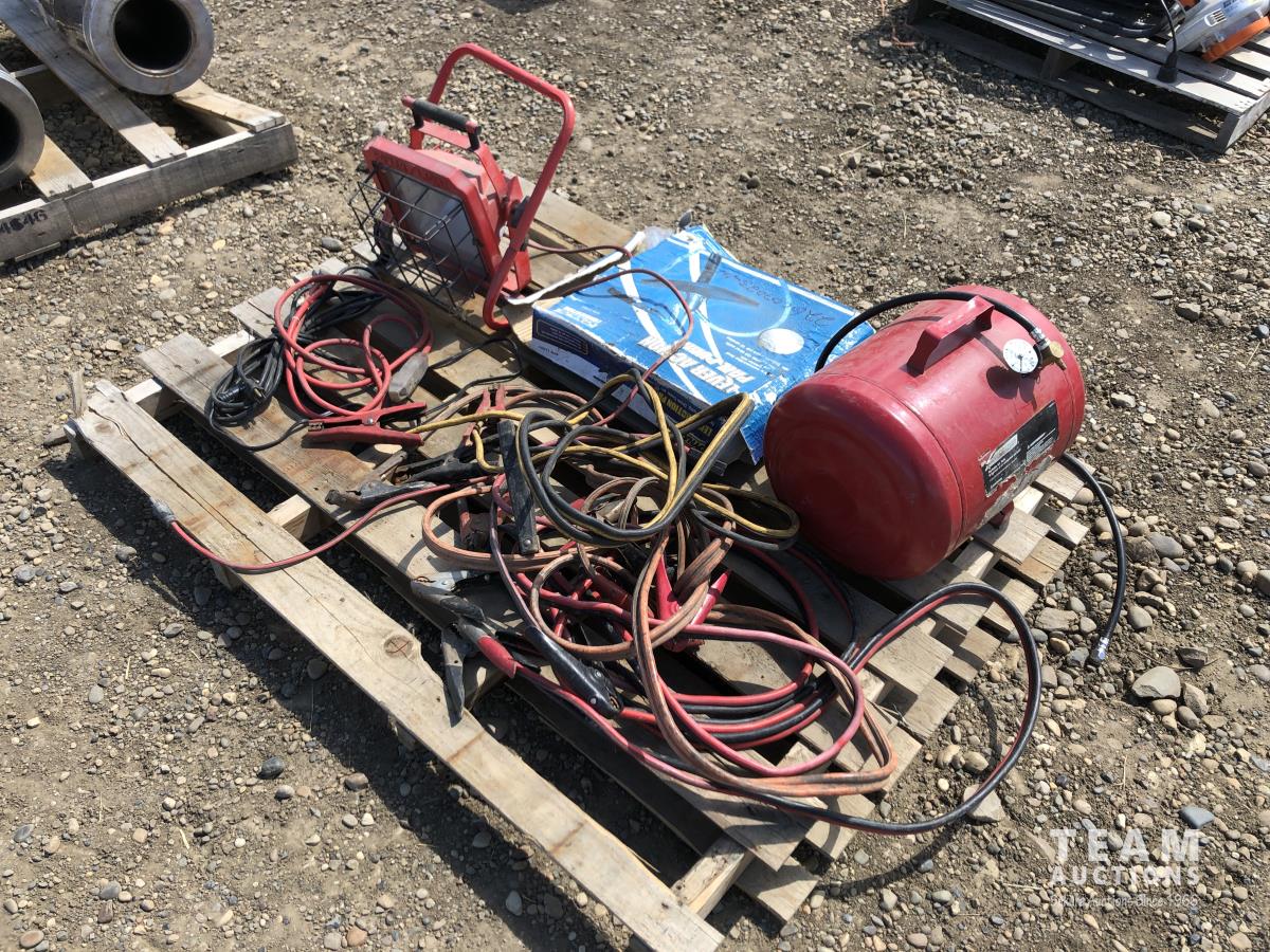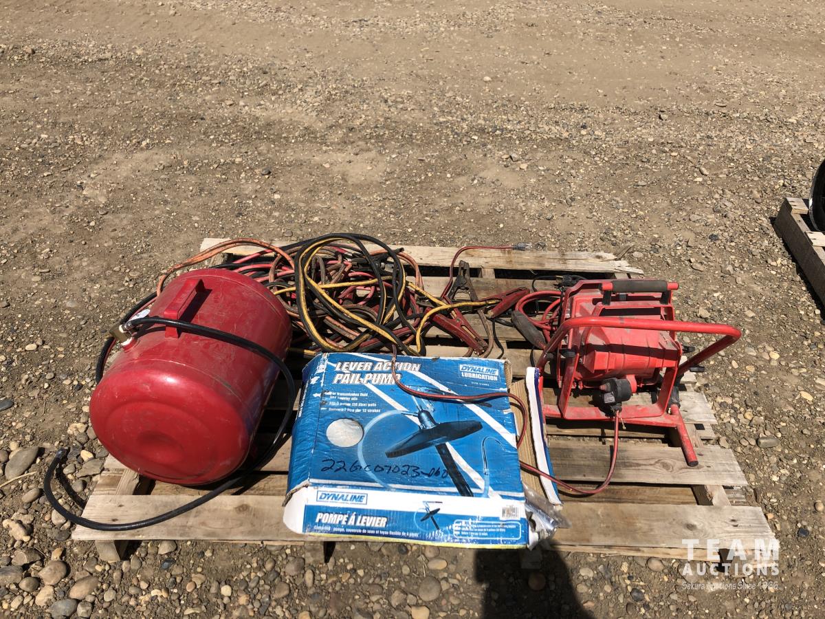 360 Air Tank, Booster Cables, Pail Pump & Shop Light