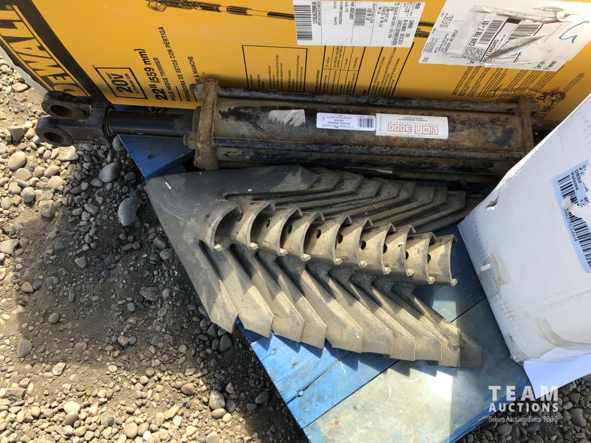 Electric Dewalt trimmer, assorted shovels, hydraulic cylinder 3.5 inch bore x 16 inch stroke