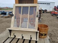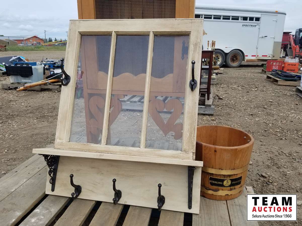 Wooden cabinet, small wooden shelf w/ coat hanger