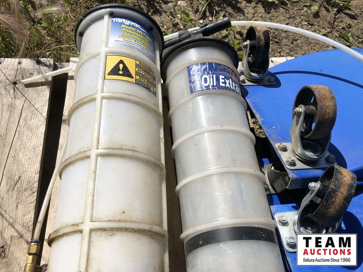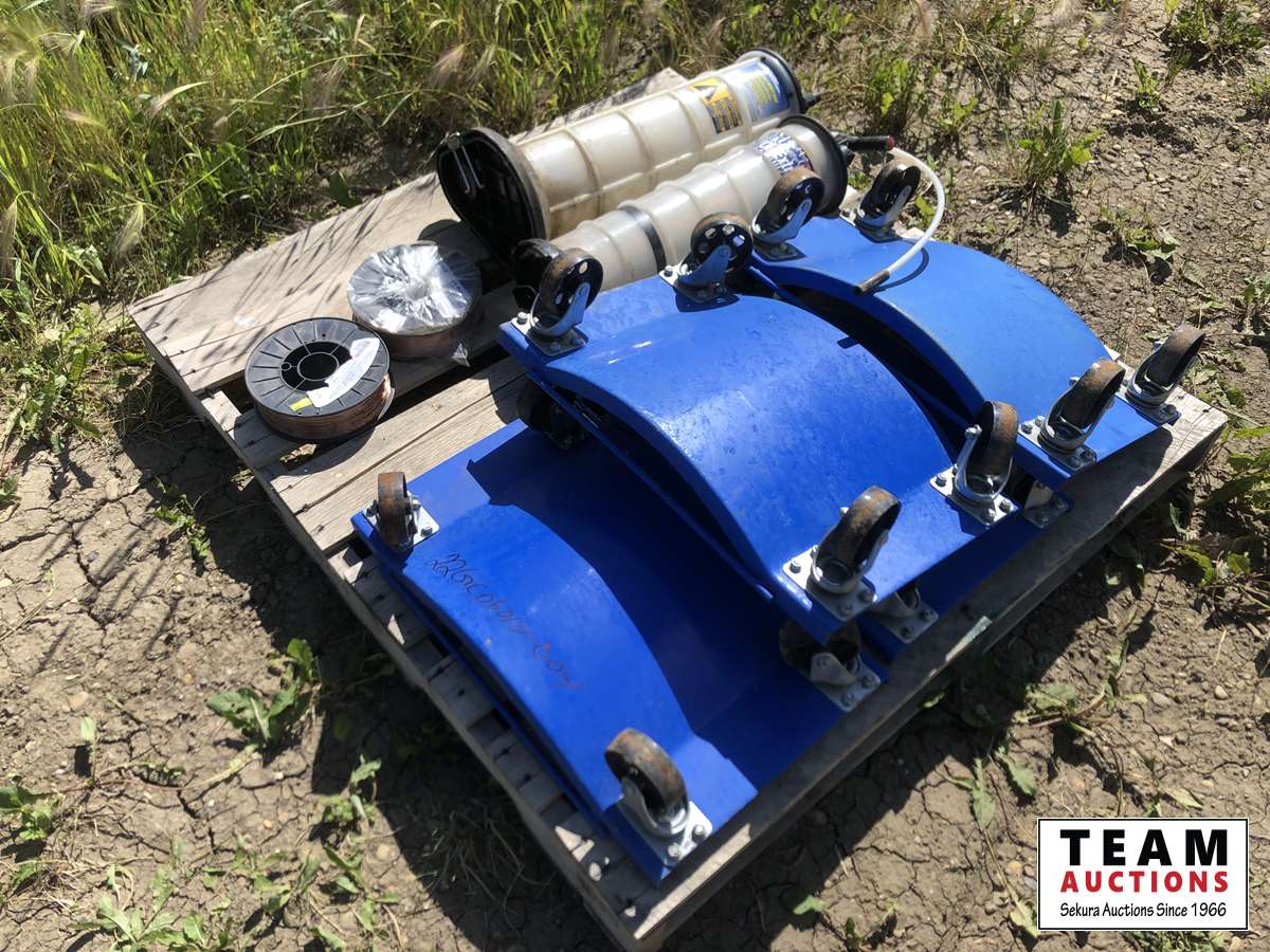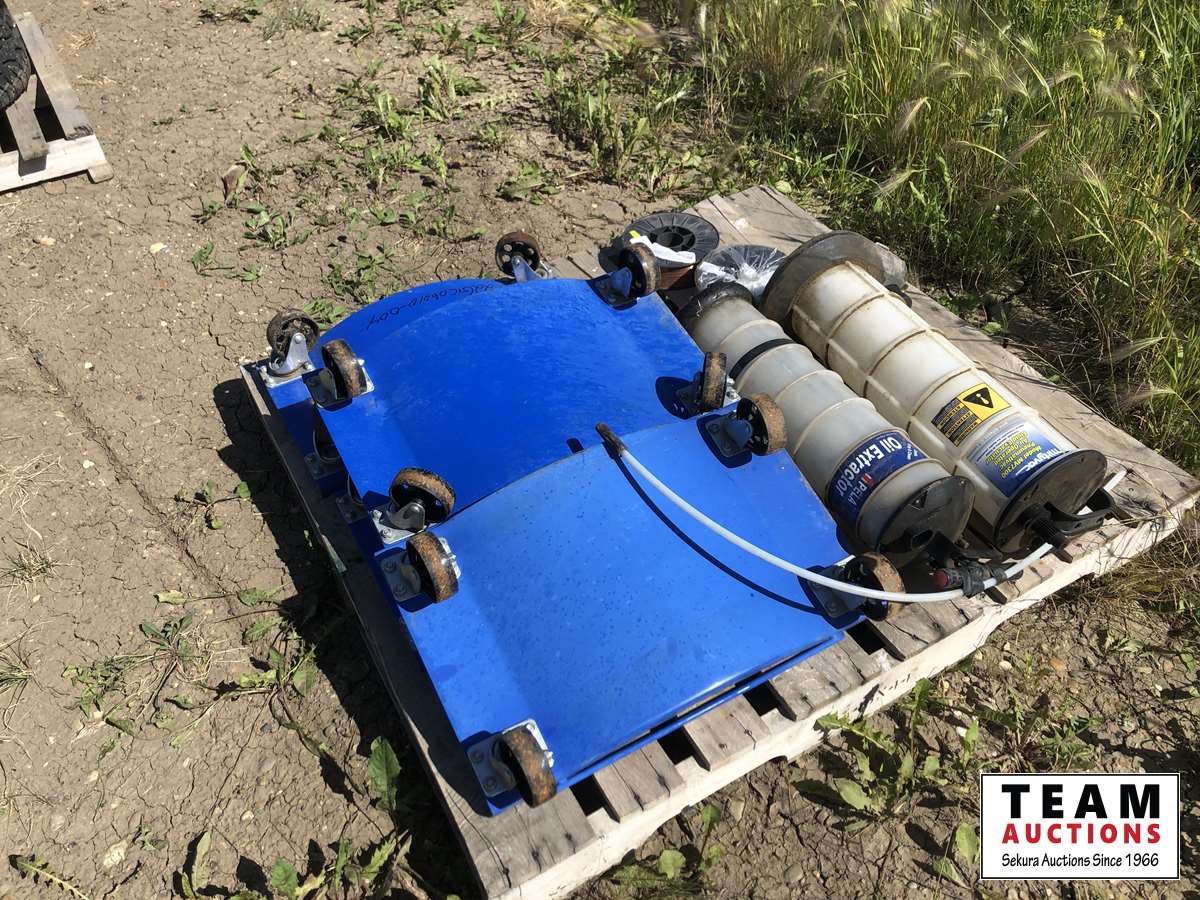 Set of (4) metal car dolly's, (2) oil extractors, (2) Blue Shield welding wire 11 lb roll