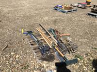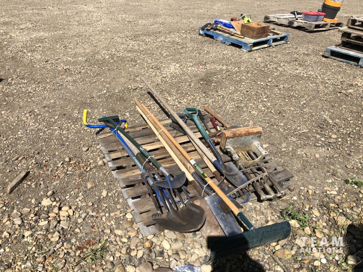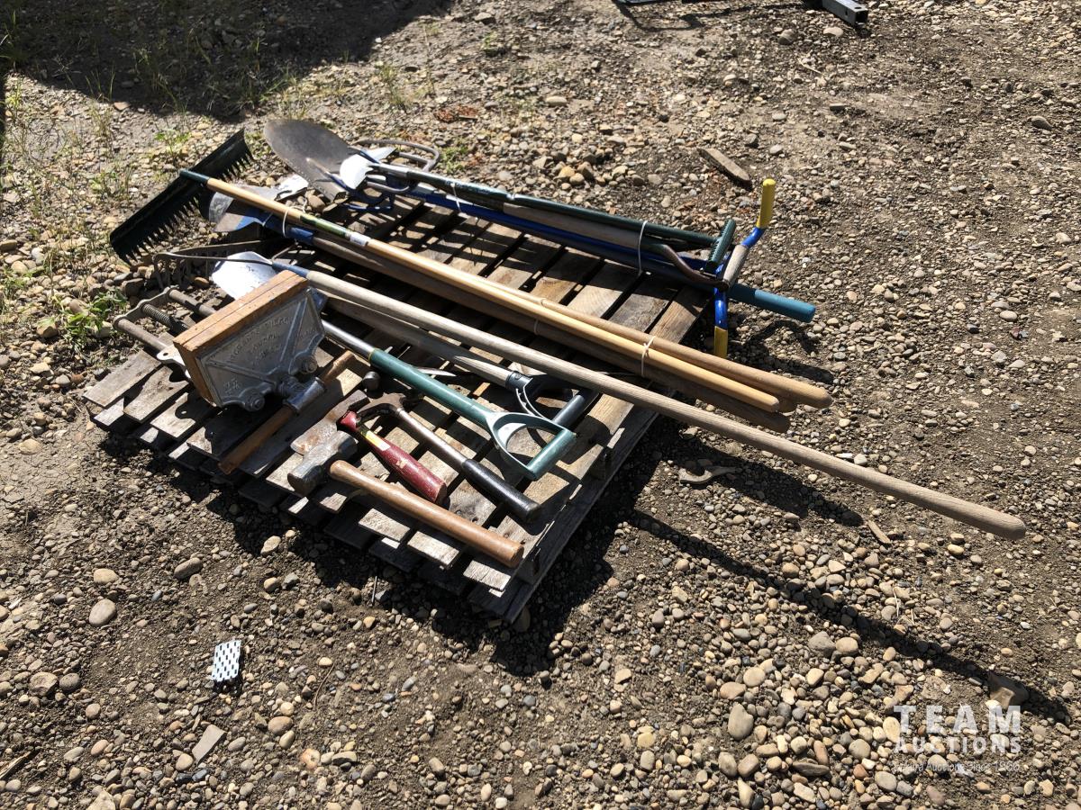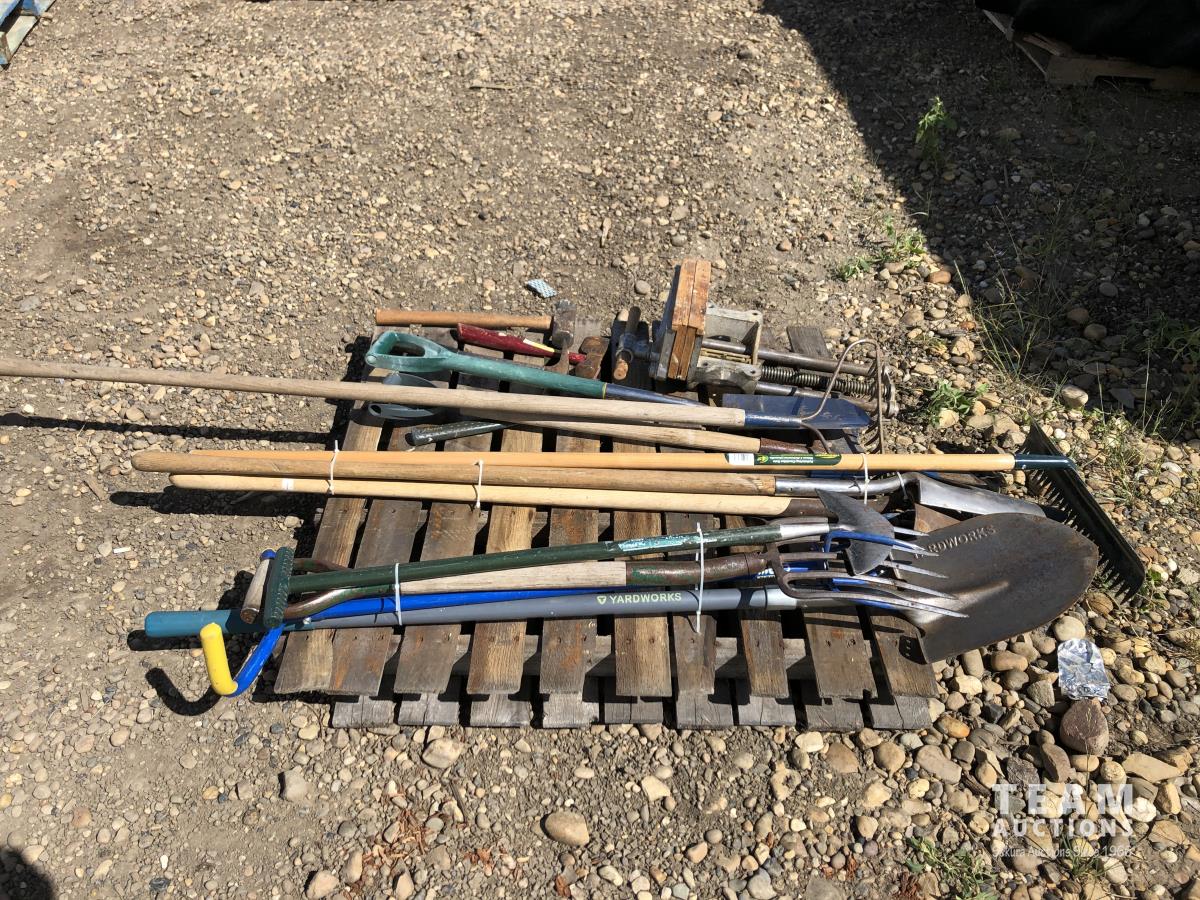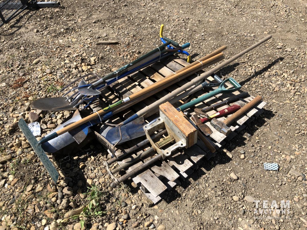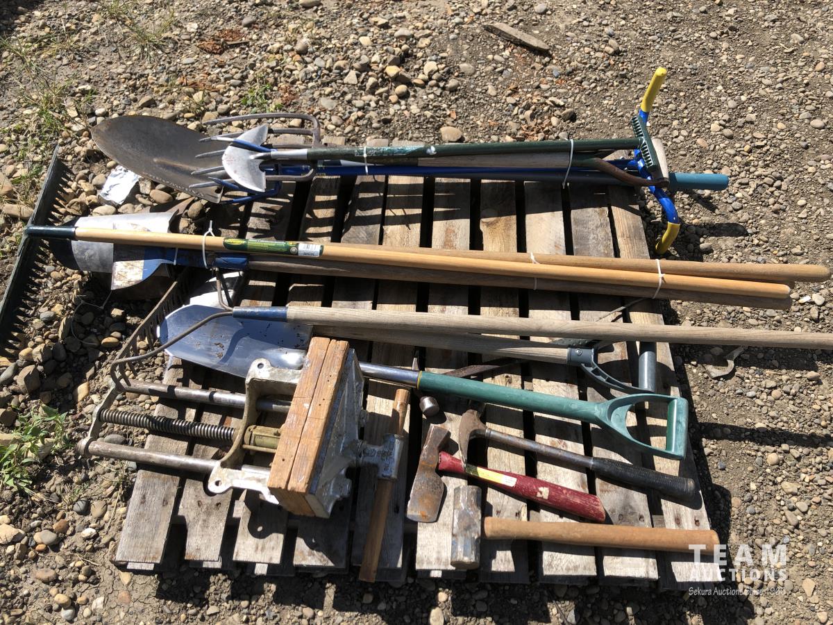 shovels, rakes, pitch forks, hammers, undermount shop vice