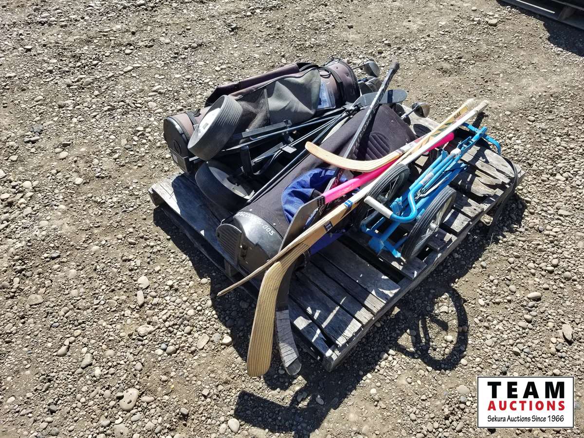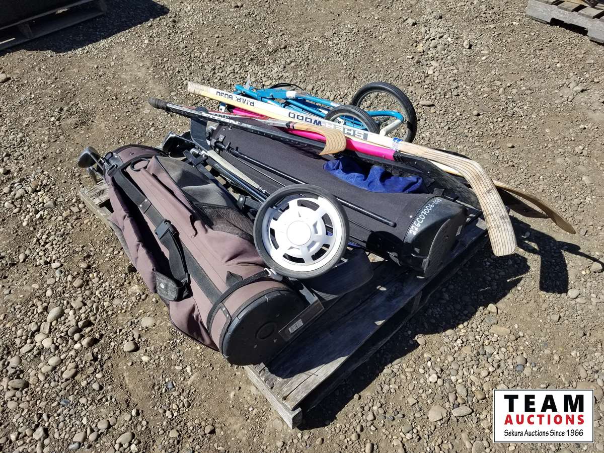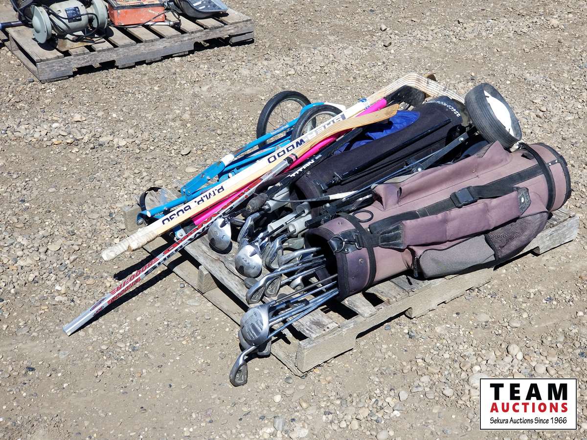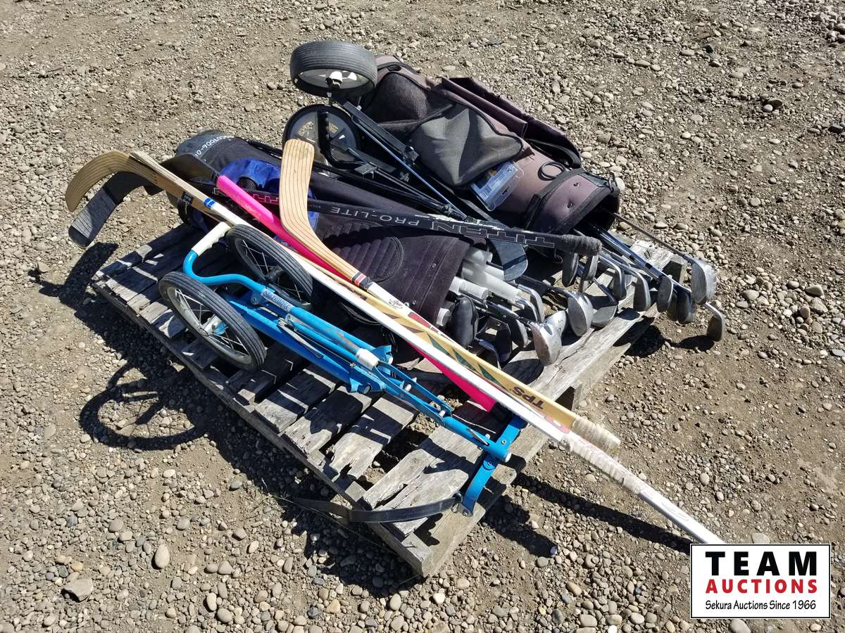 Golf clubs, bags, carts, hockey sticks