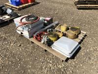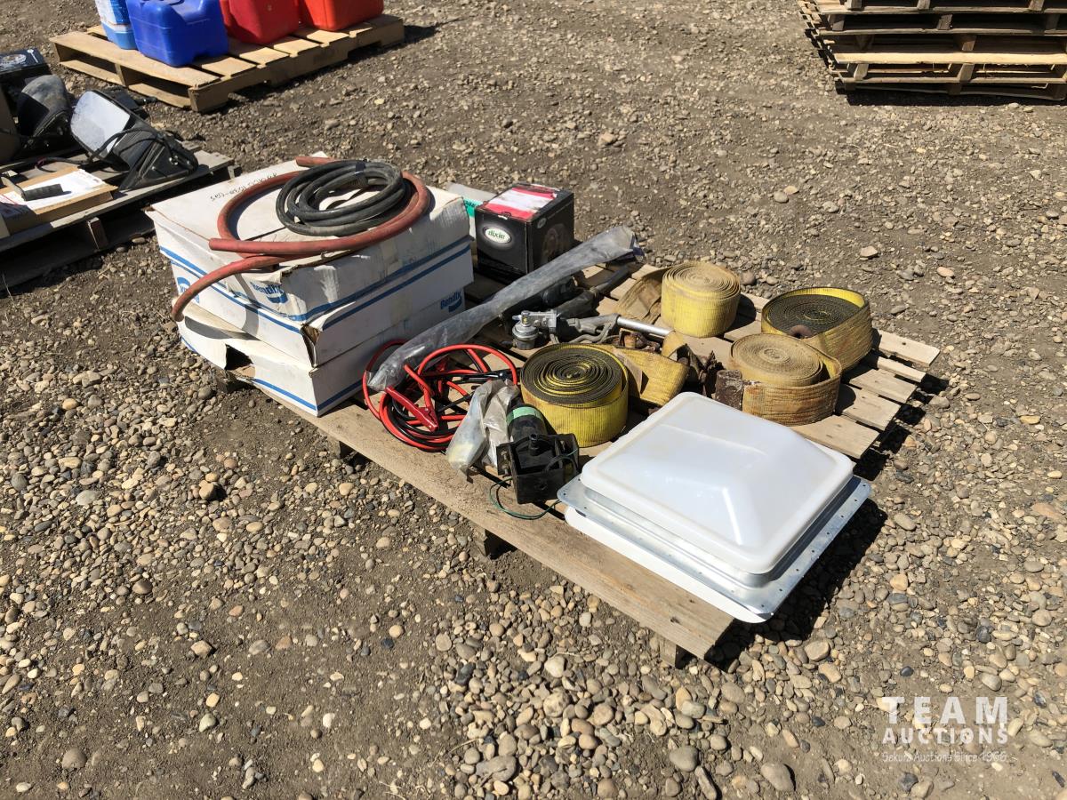 load straps, alternator, center caps, gas nozzle, trailer roof vent, booster cables