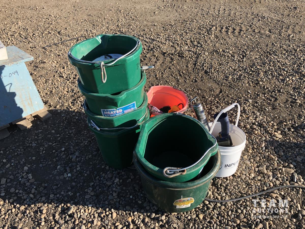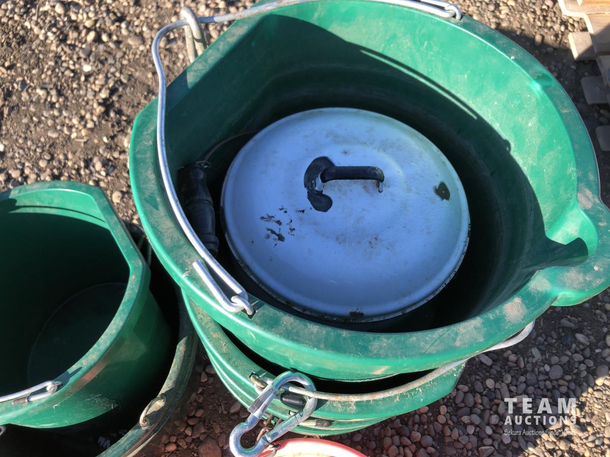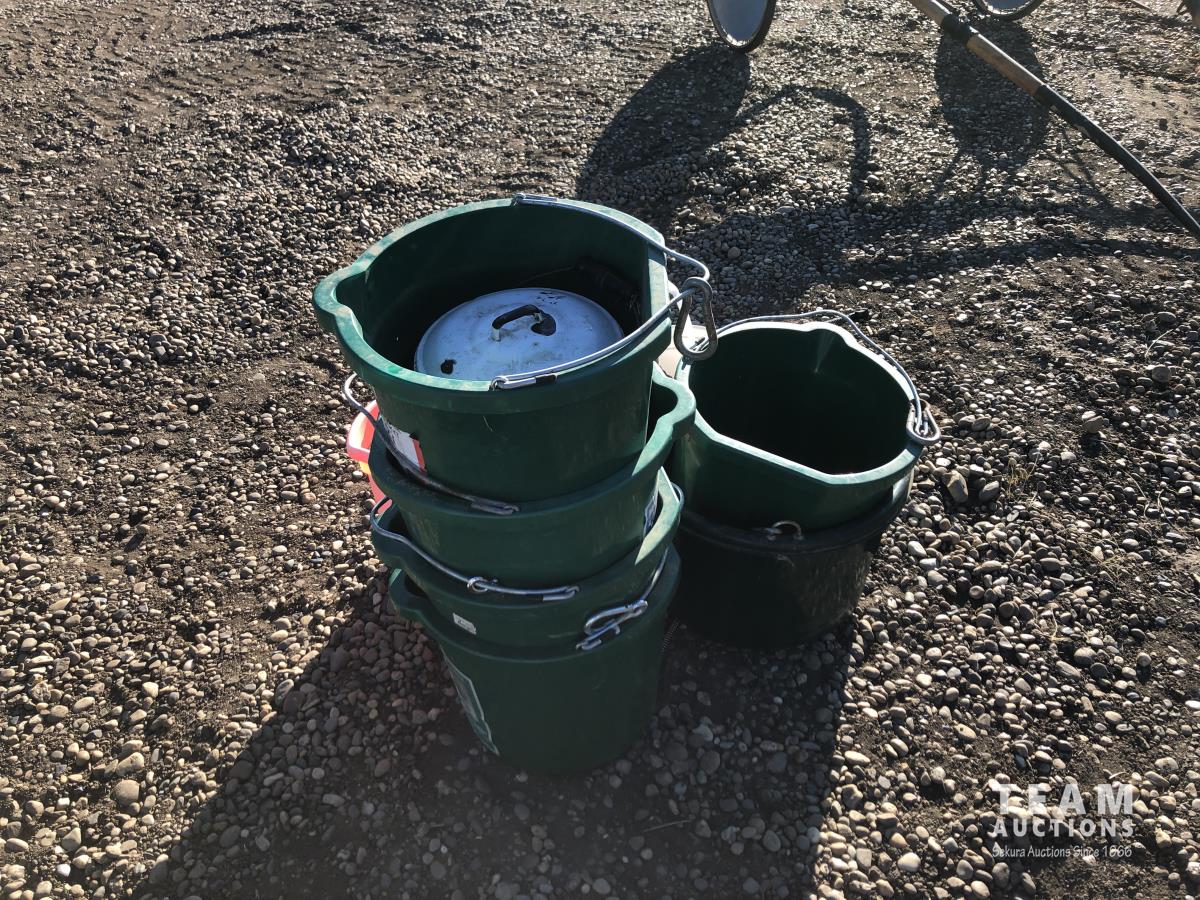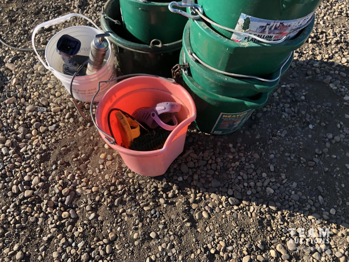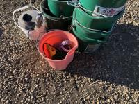 5 gallon flat back buckets, brushes, electric grease guns with battery & charger