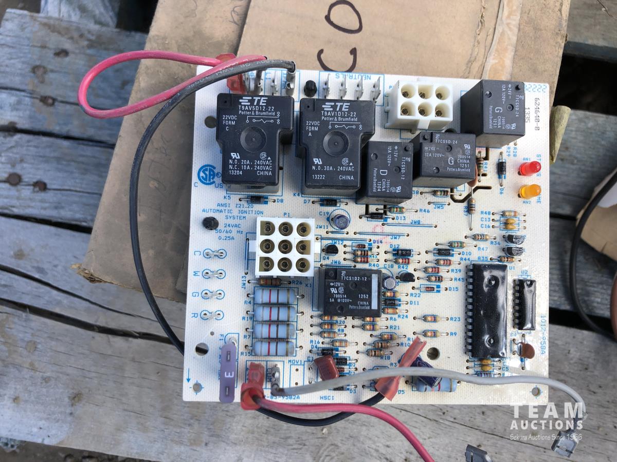 electrical parts, 1/3 HP electric motor, circuit boards, miscellaneous electrical relays, yard light
