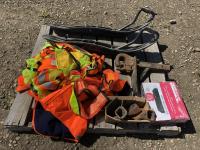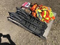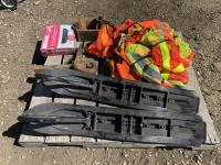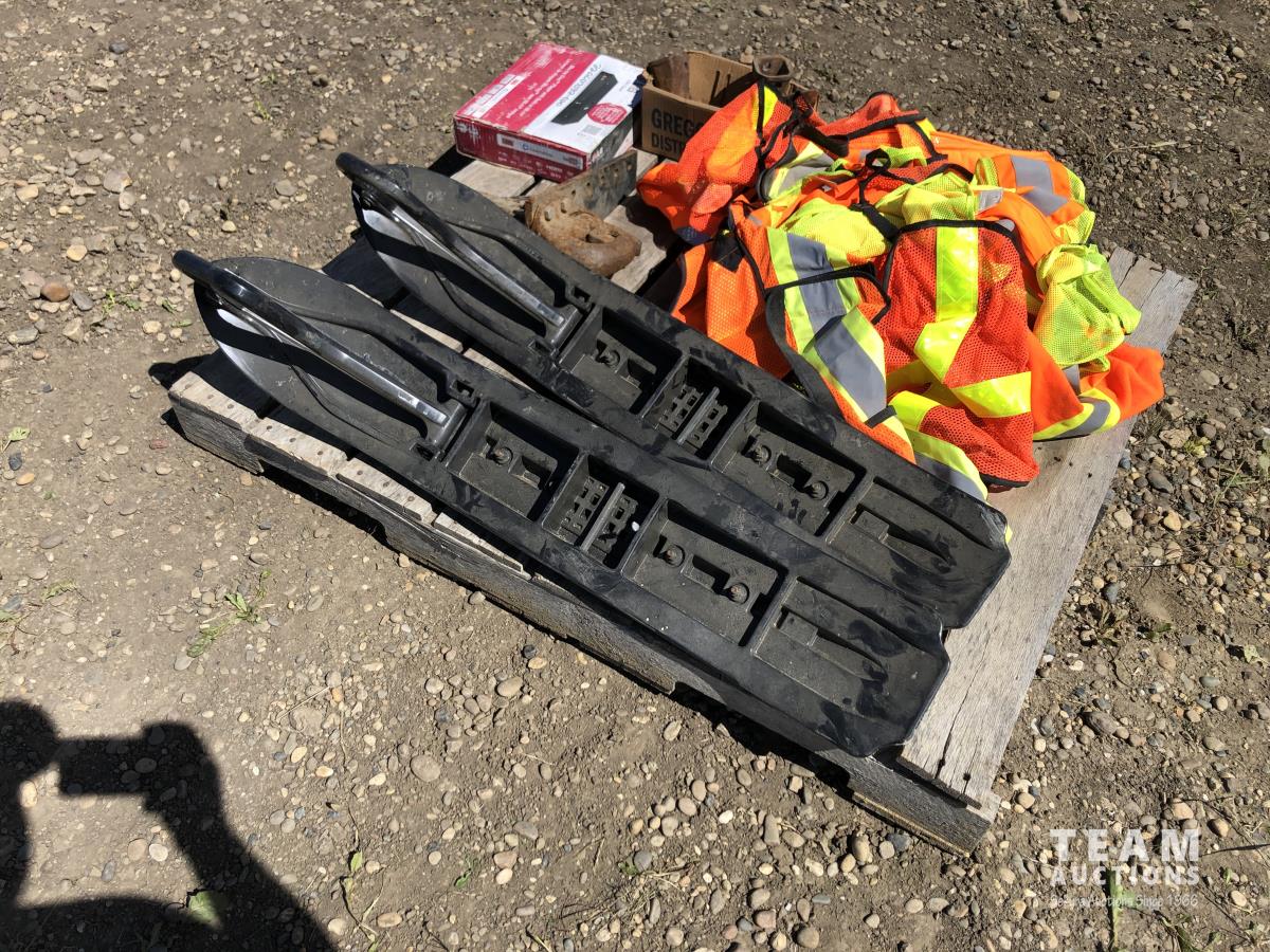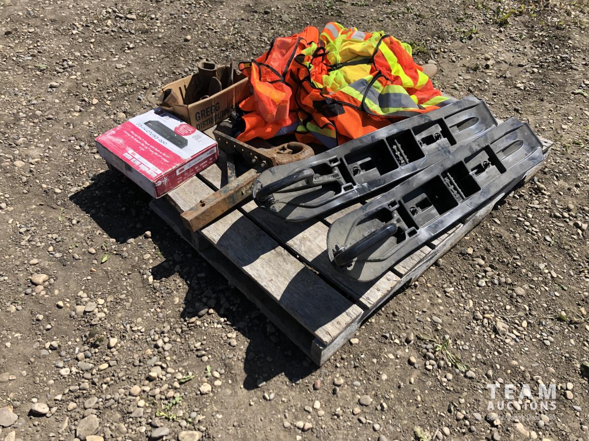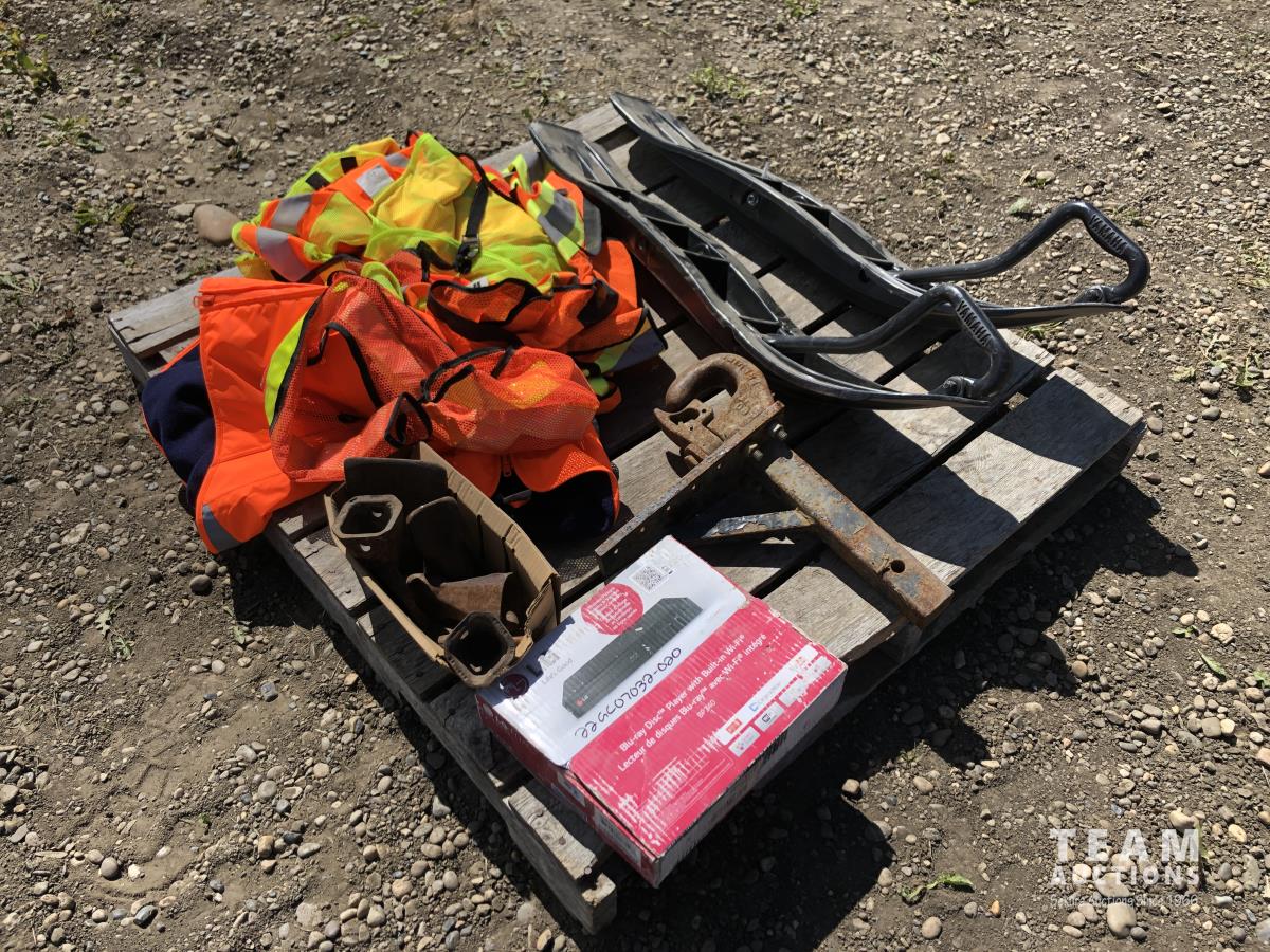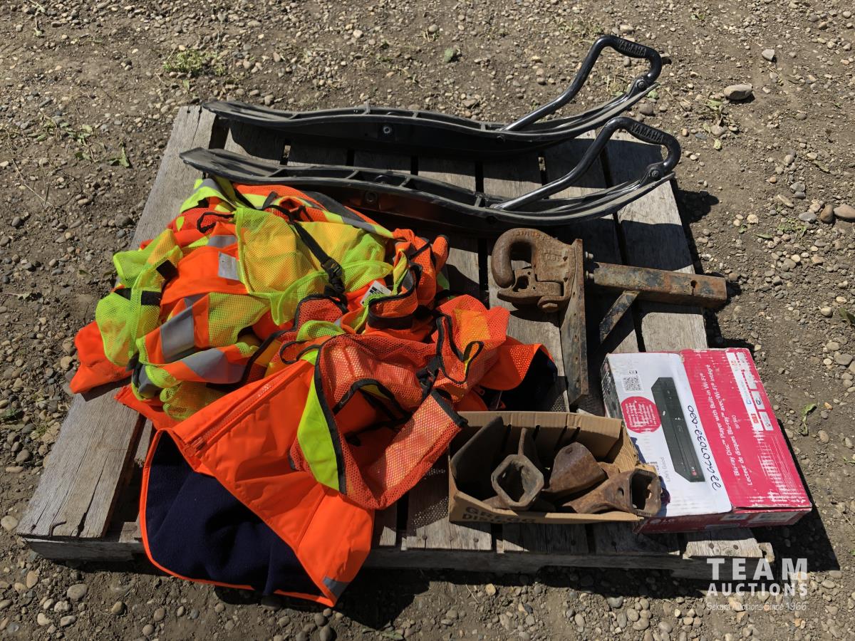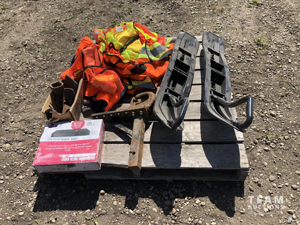 blue ray player, skidoo skis, safety vests, hitch, bucket teeth