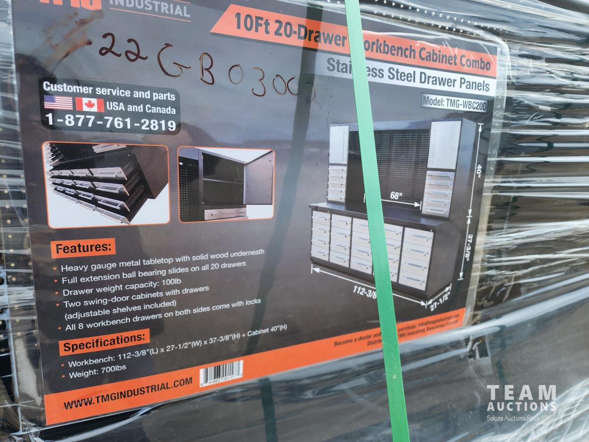 2525 TMG Industrial 10 Ft 20 Drawer Workbench Cabinet Combo (Unused)