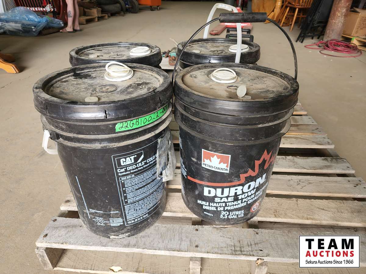 1294 (3) Pails of Cat 0W-40 Oil and (1) Pail of Duron 10W30 Oil