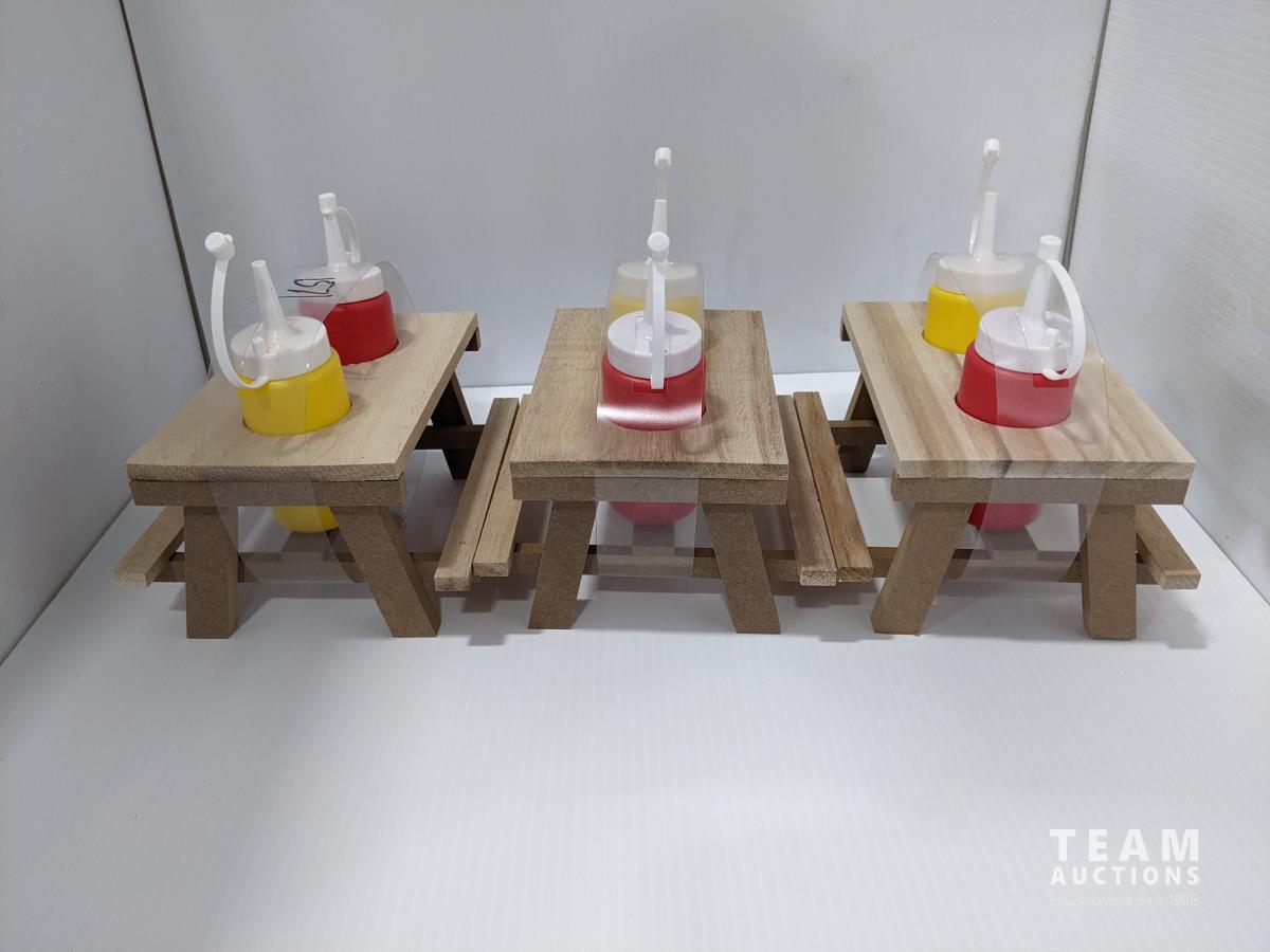 1763 (3) Picnic Tables w/ Condiment Bottles (Unused)