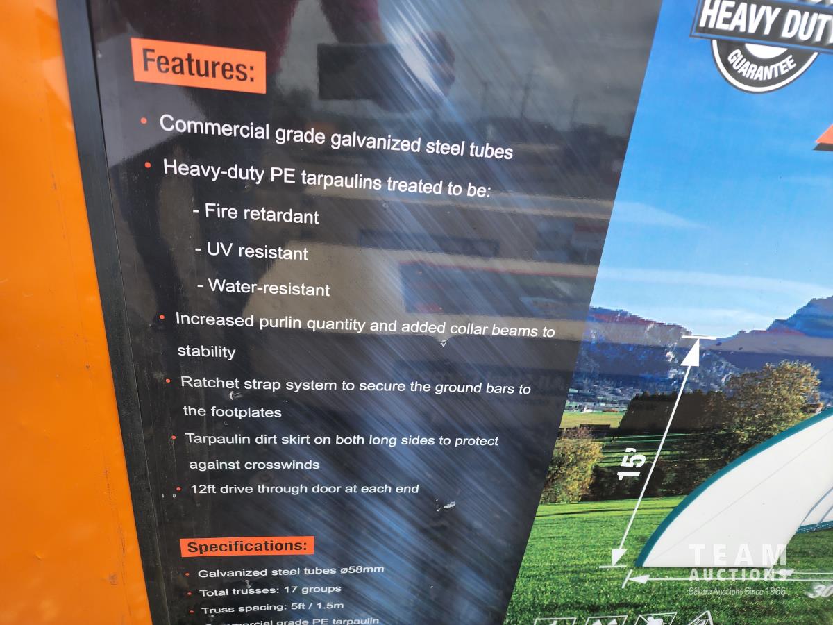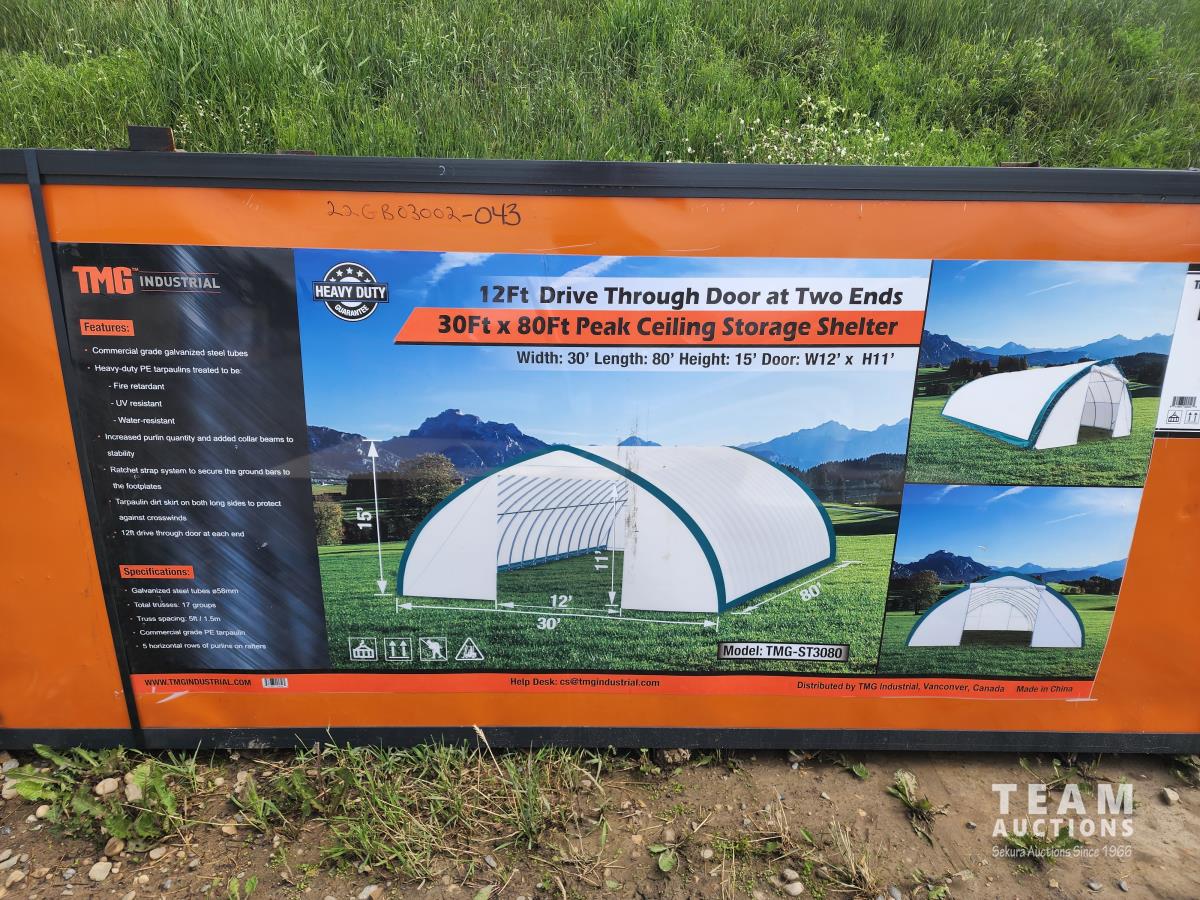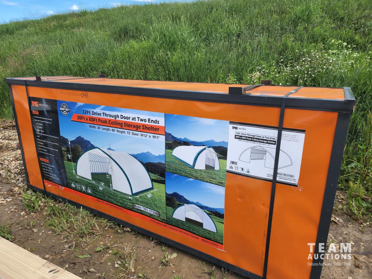 2528 TMG Industrial 30 Ft X 80 Ft Peak Ceiling Storage Shelter (Unused)