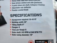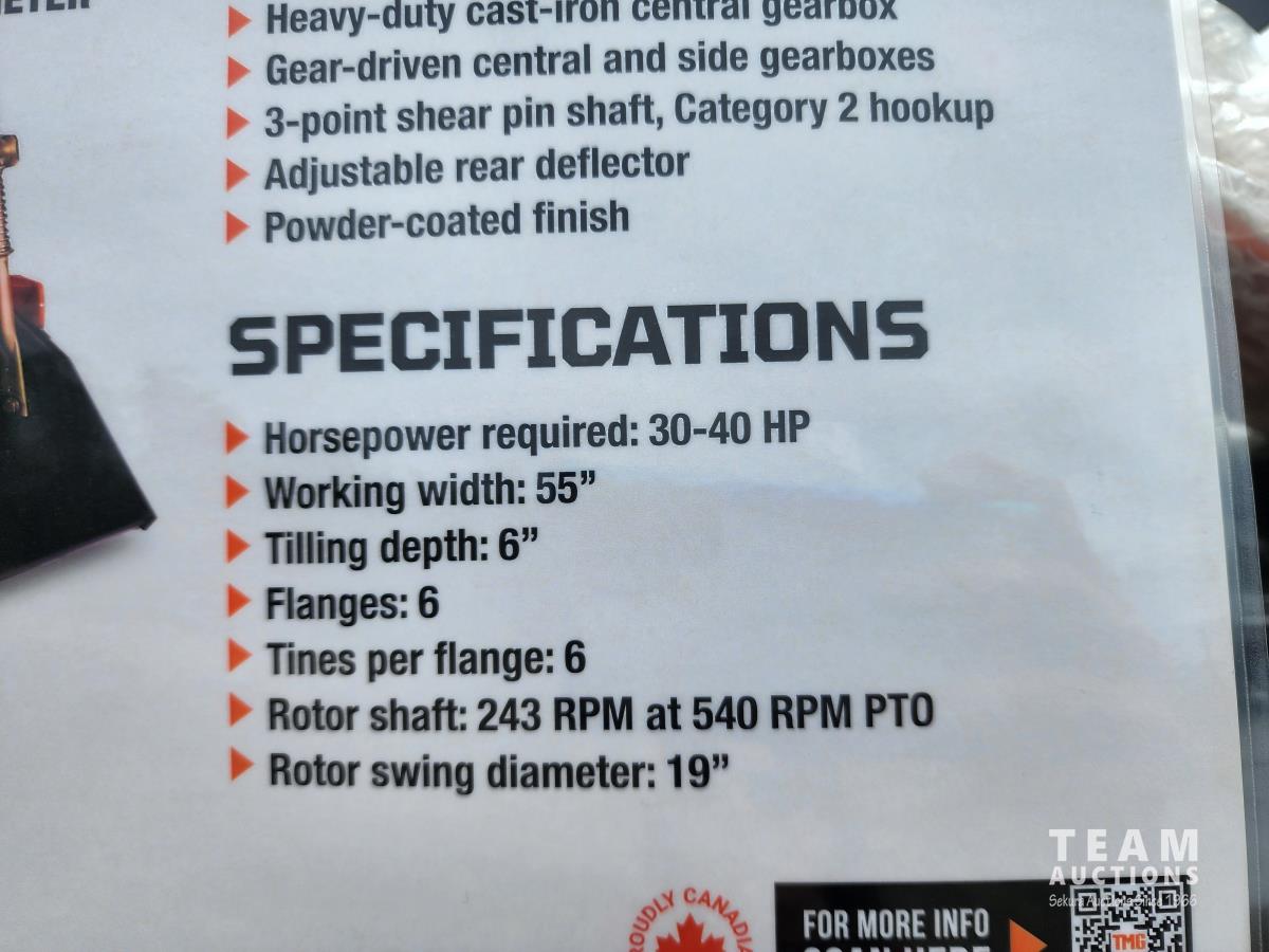 2518 TMG Industrial 55 Inch 3 PT Hitch Rotary Tiller (Unused)