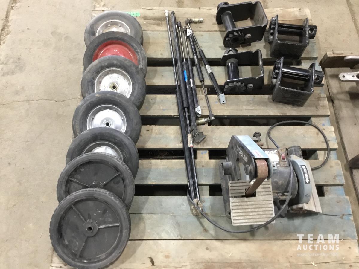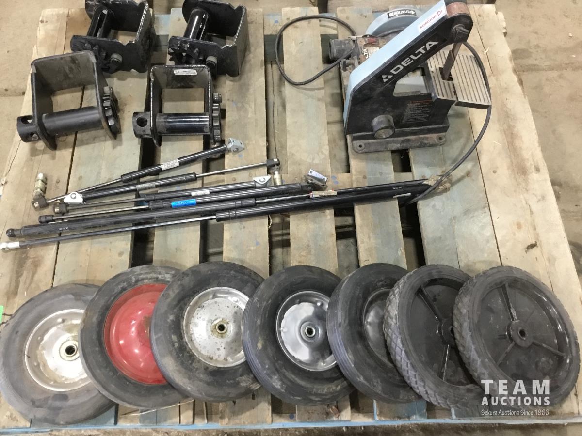 1846 Delta Sander, Assorted Lawn Mower Wheels, Trailer Tie Downs Ratchets
