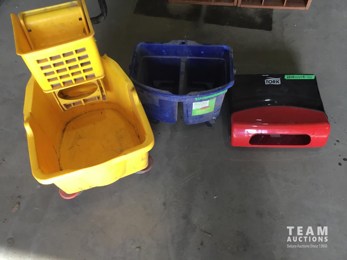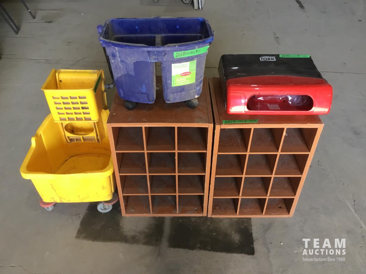 1284 Mop Pails, Wood Organizers and Paper Towel Dispenser