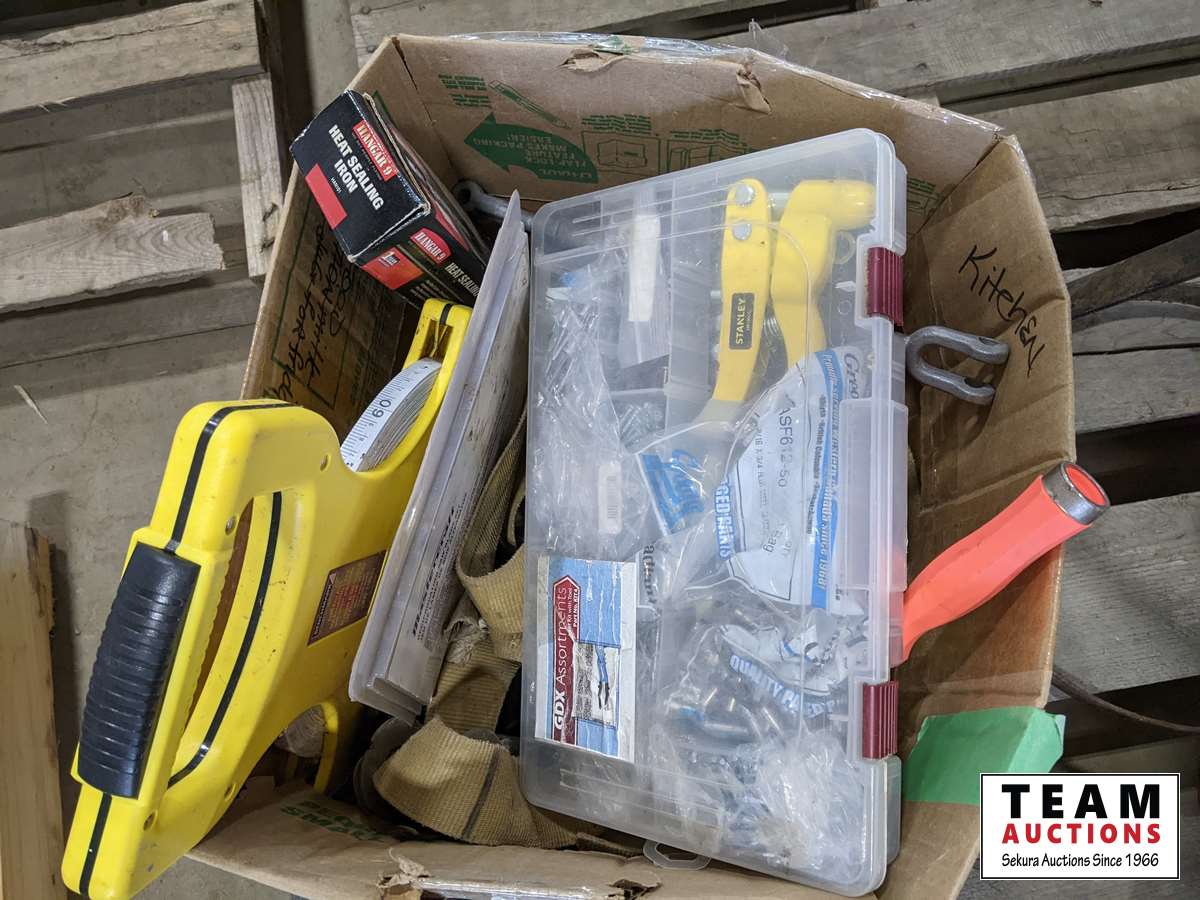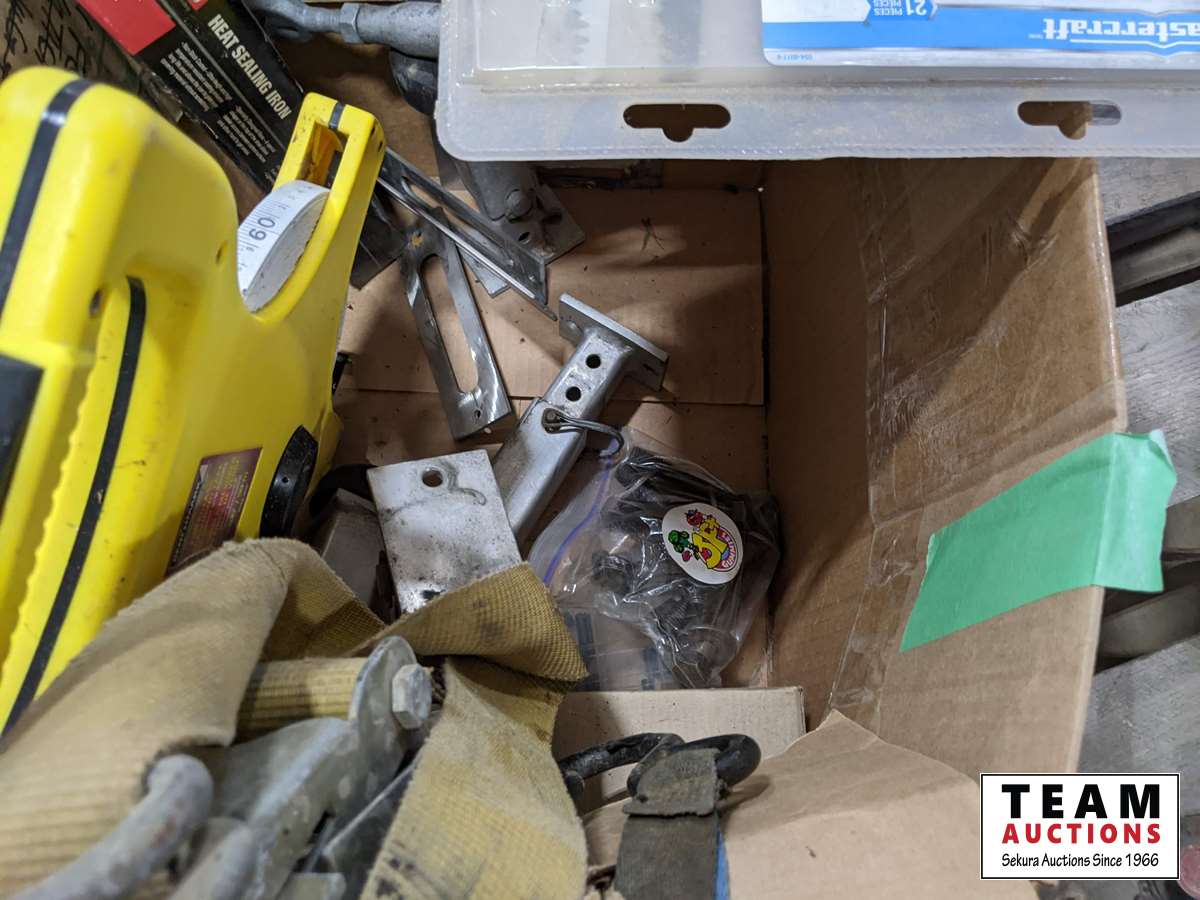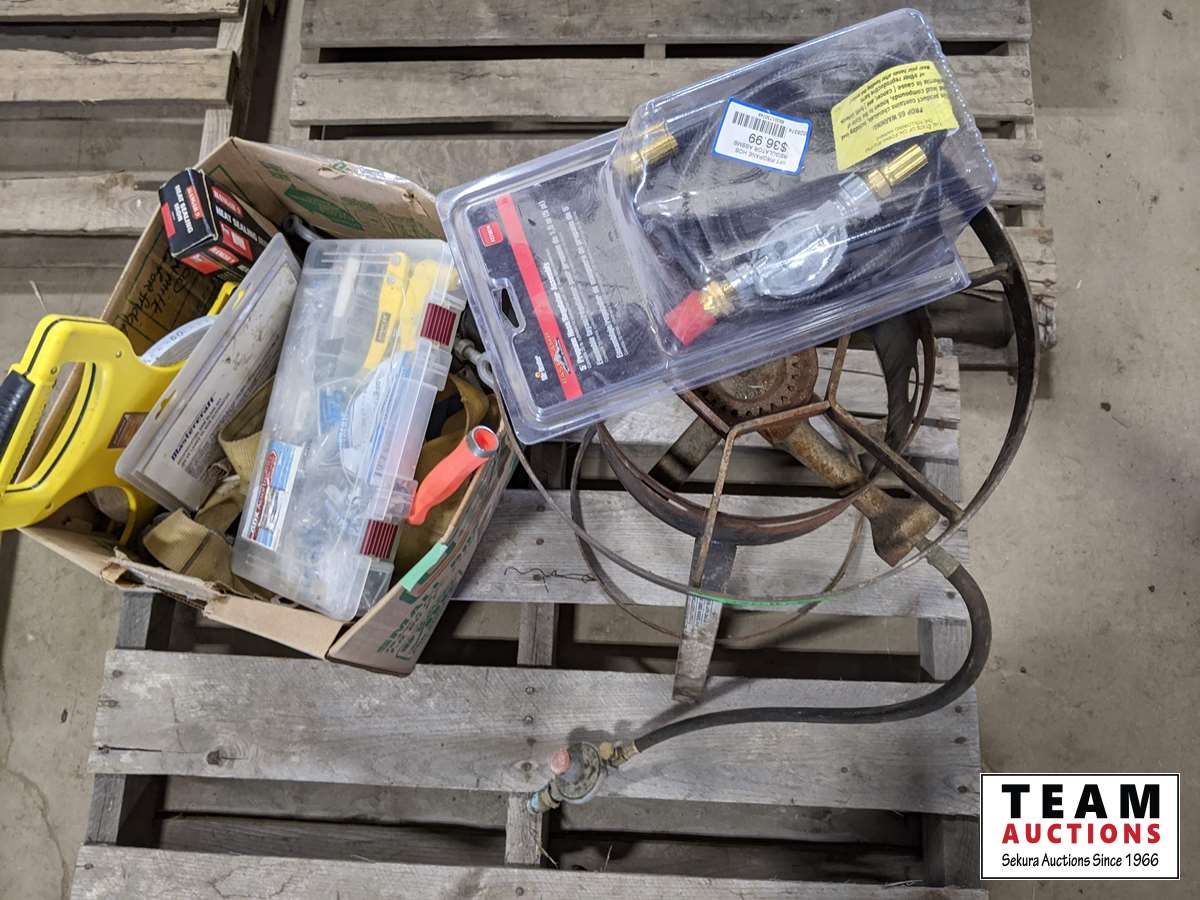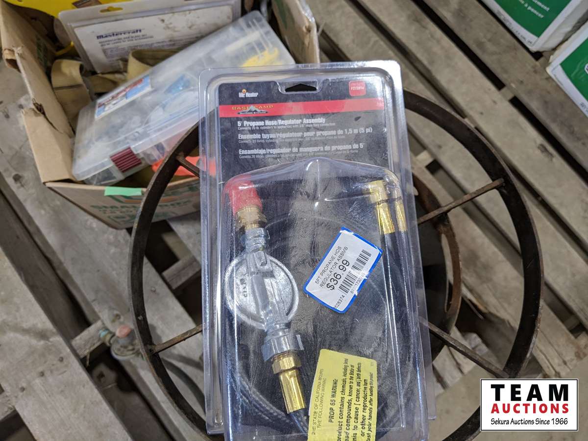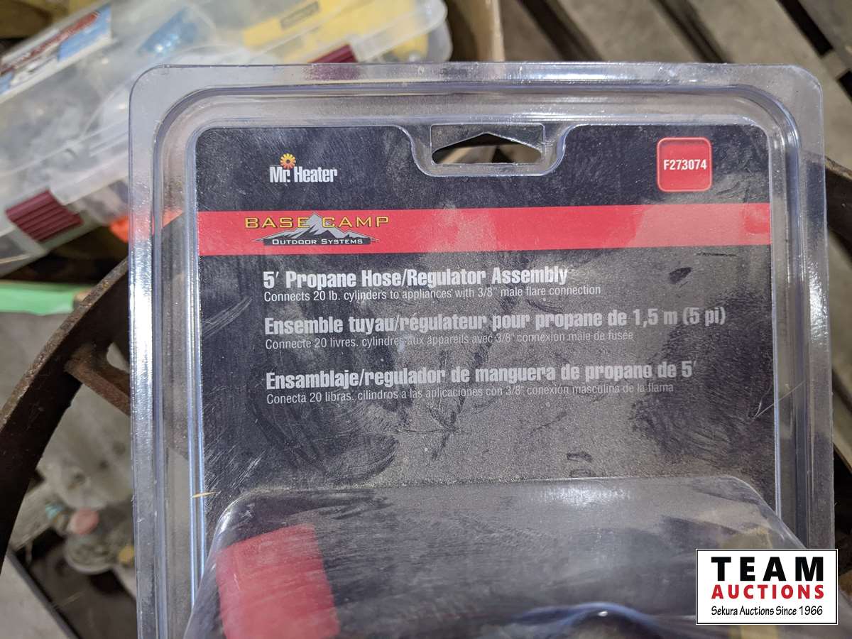Propane cooker, miscellaneous tools, 300 ft measuring tape, rivets, regulator, heat sealing iron