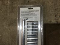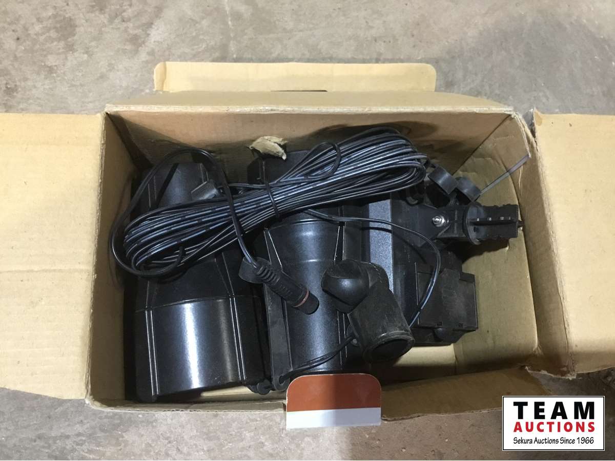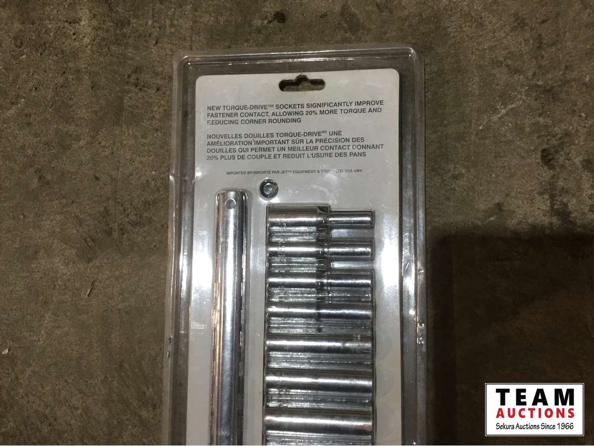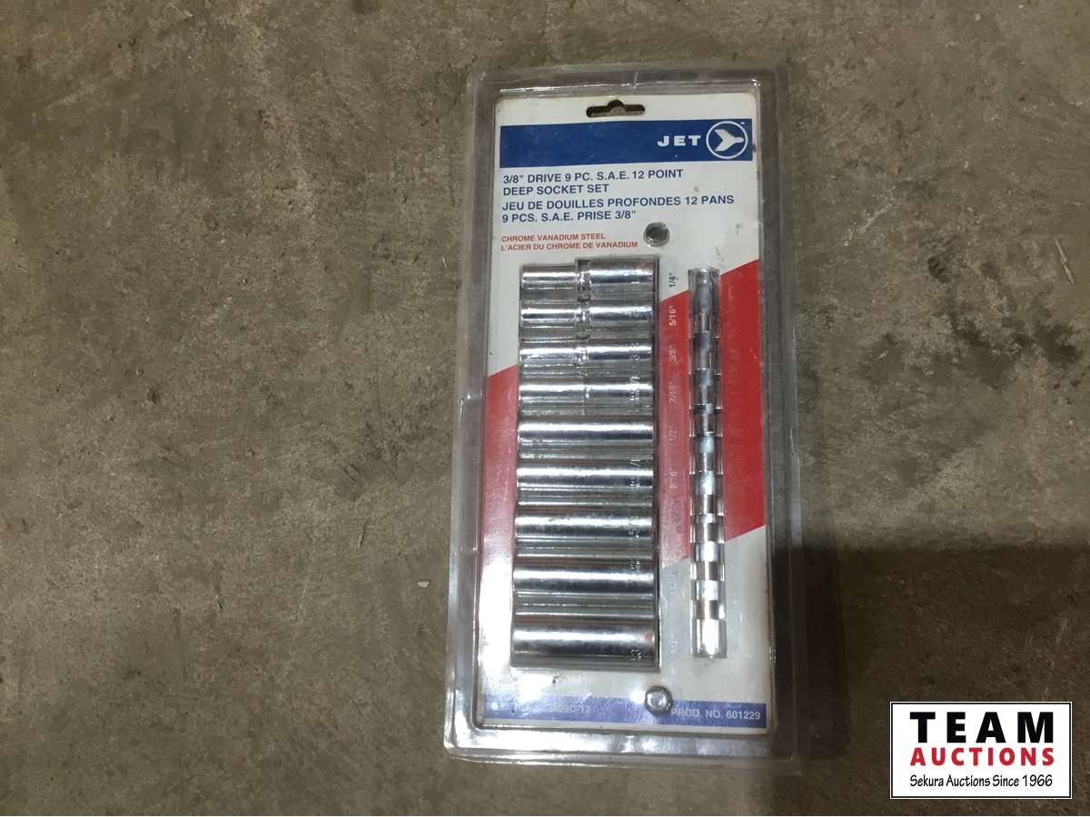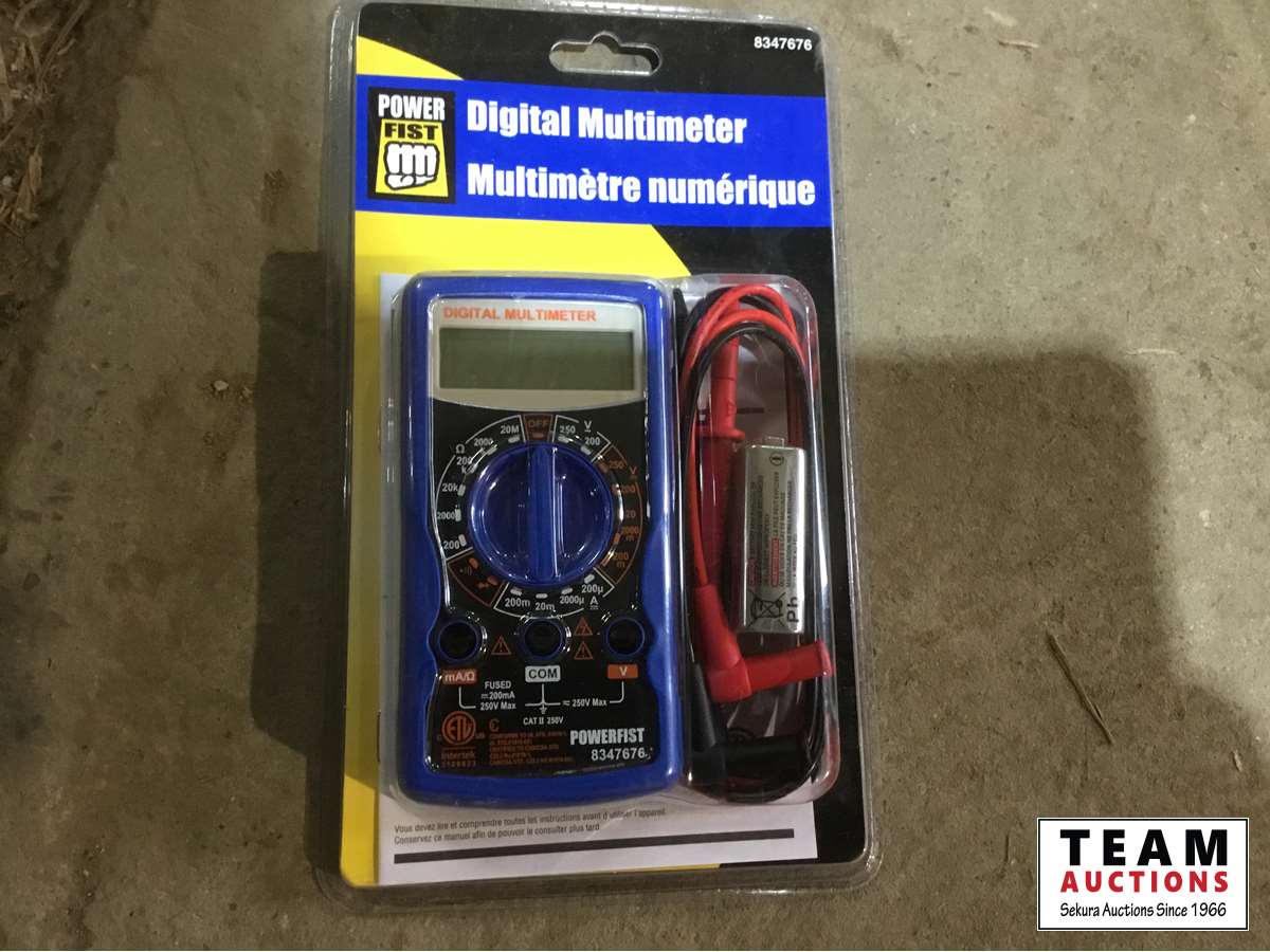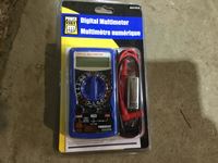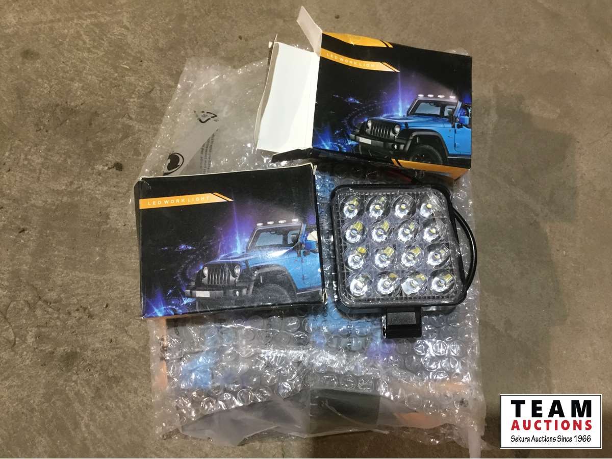 Multimeter, signs, spotlights, mini pliers, soldering gun, Jet socket set, LED work lights, qty of miscellaneous lights, tool organizer