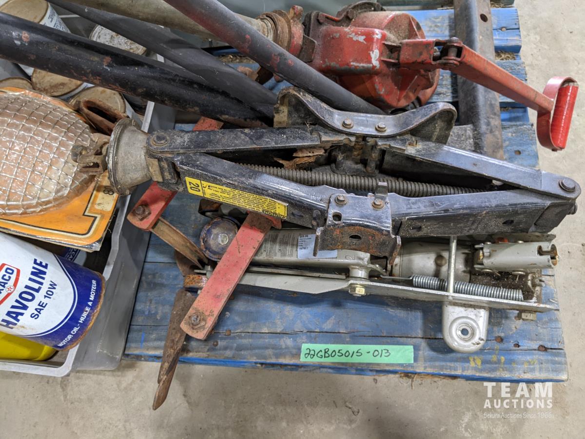 barrel pumps, motor oil, jacks, homebuilt hitch mount bike carrier, small plow