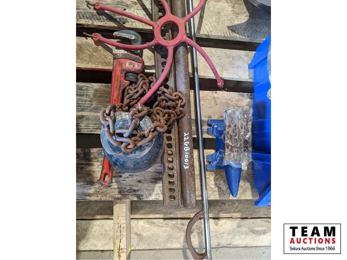 Pipe wrench, anvil, Jack All, impeller, metal box, ball and chain