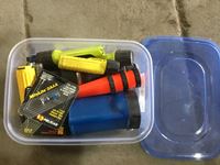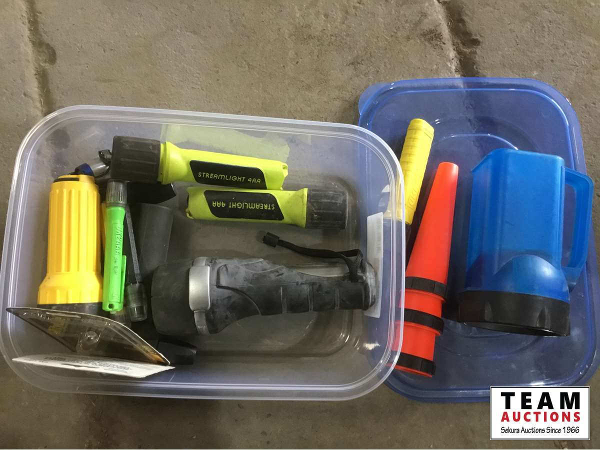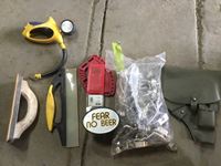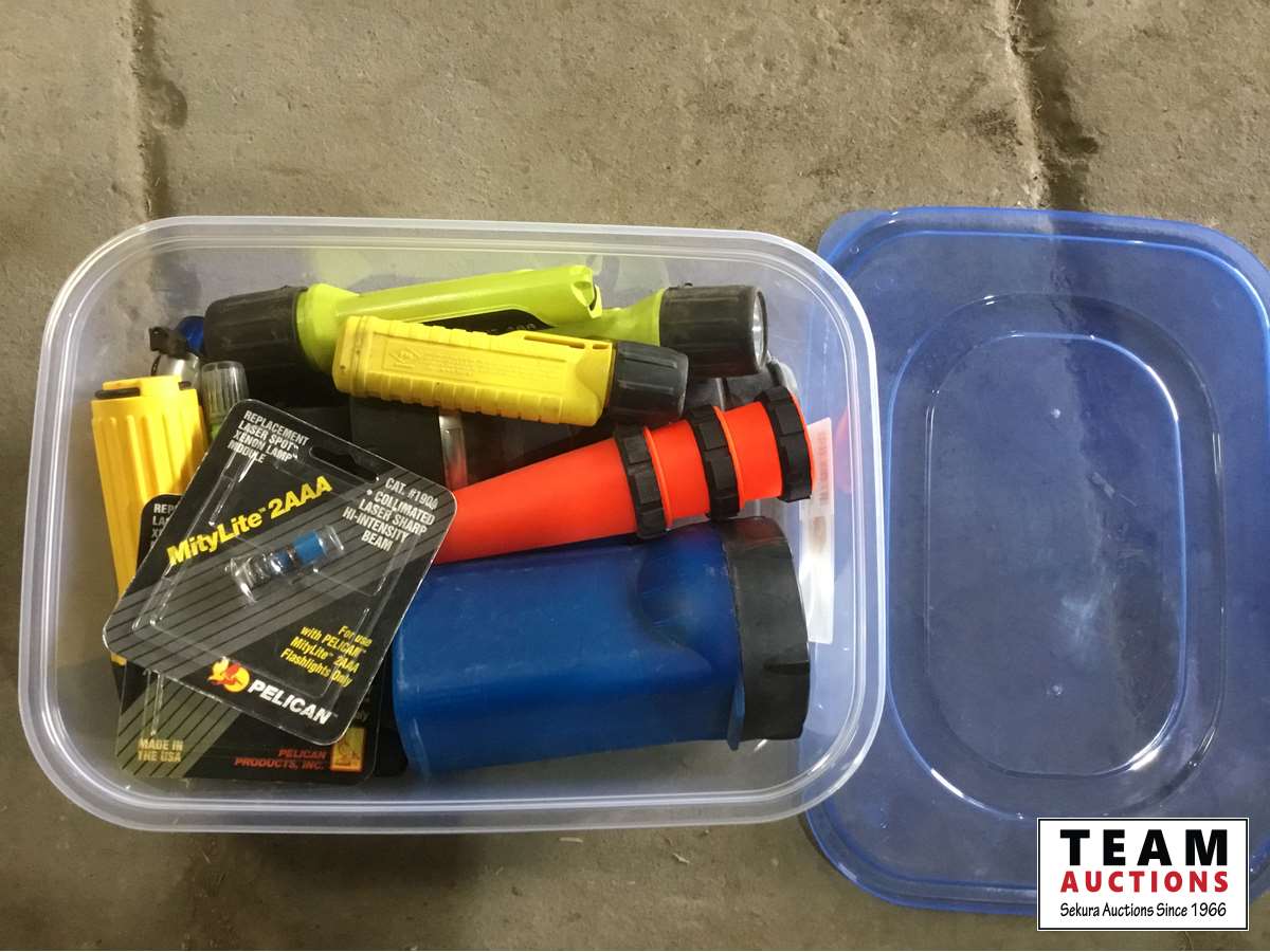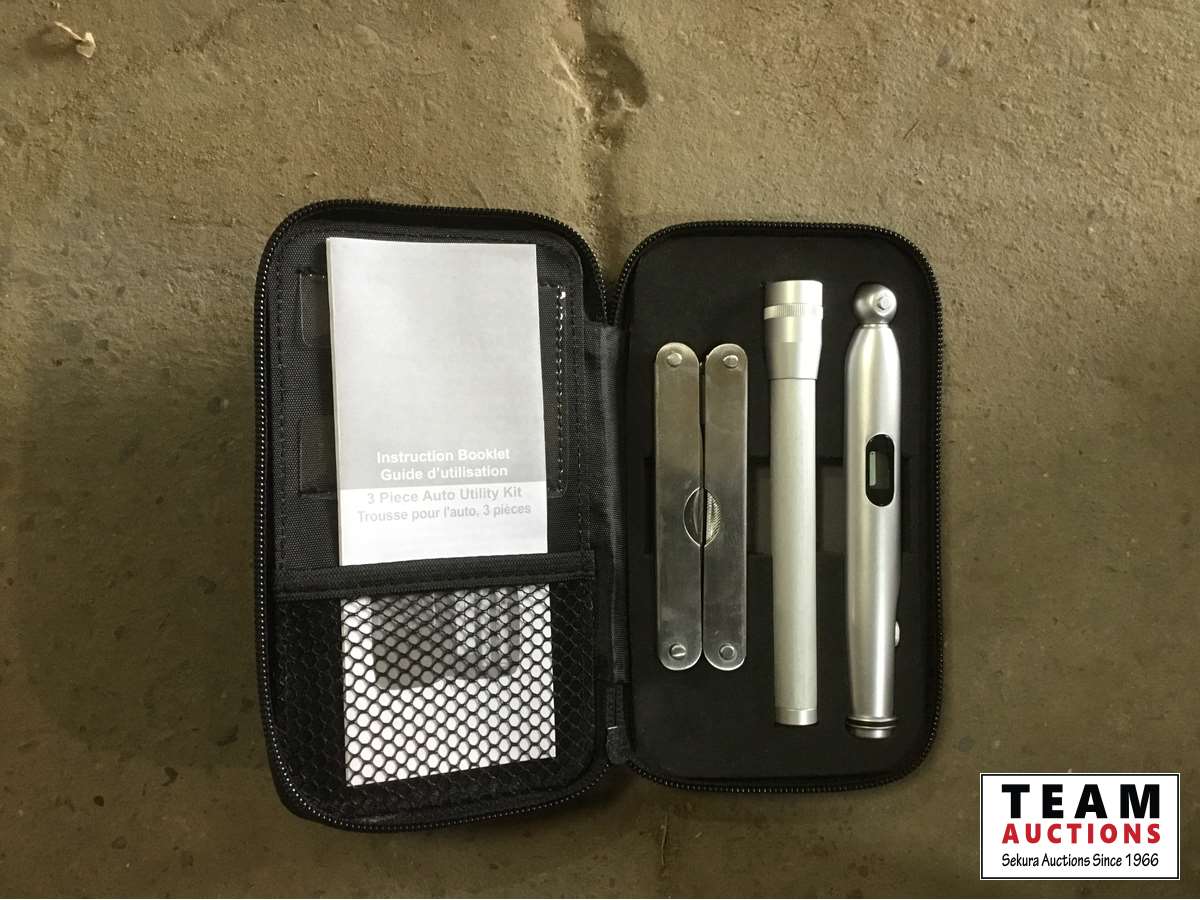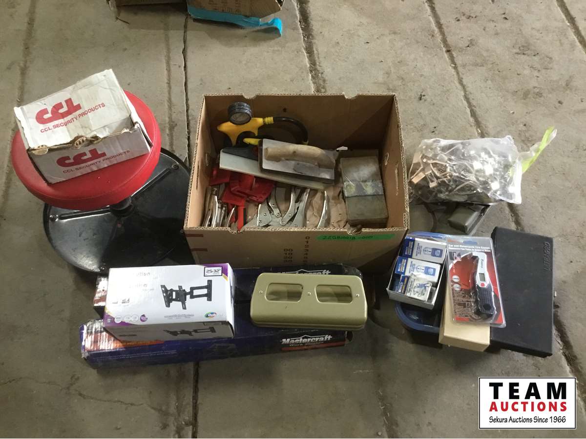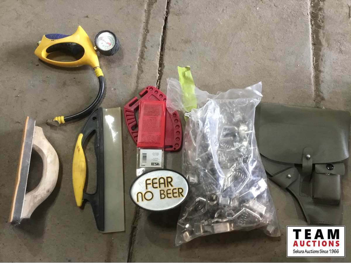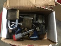Flashlights, hole punch, sockets, pad locks, vise grips, tire gauge
