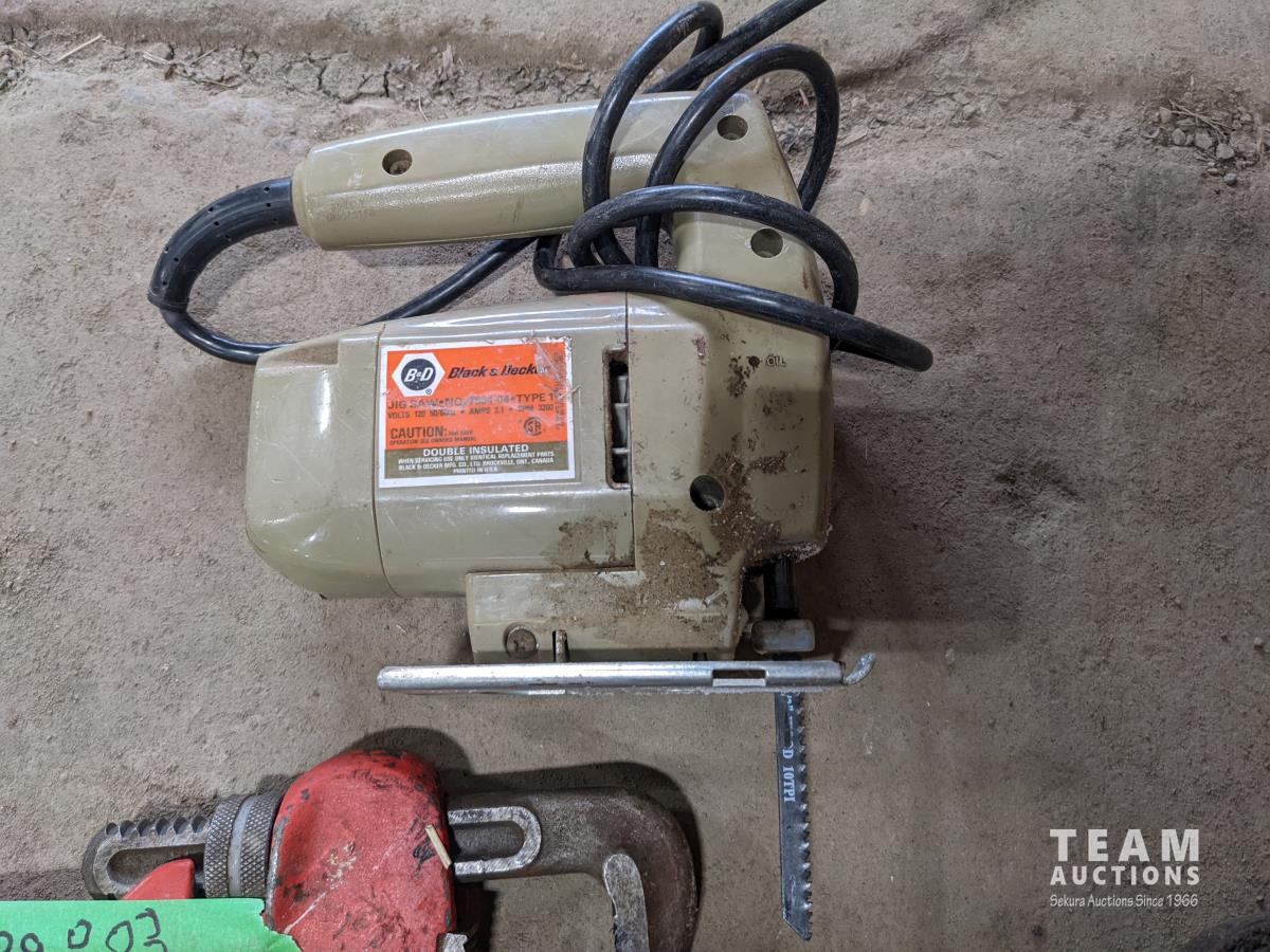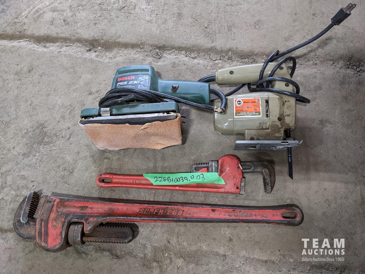 Black & Decker jig saw, Bosch sander and pipe wrenches