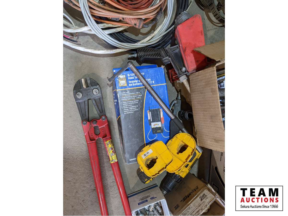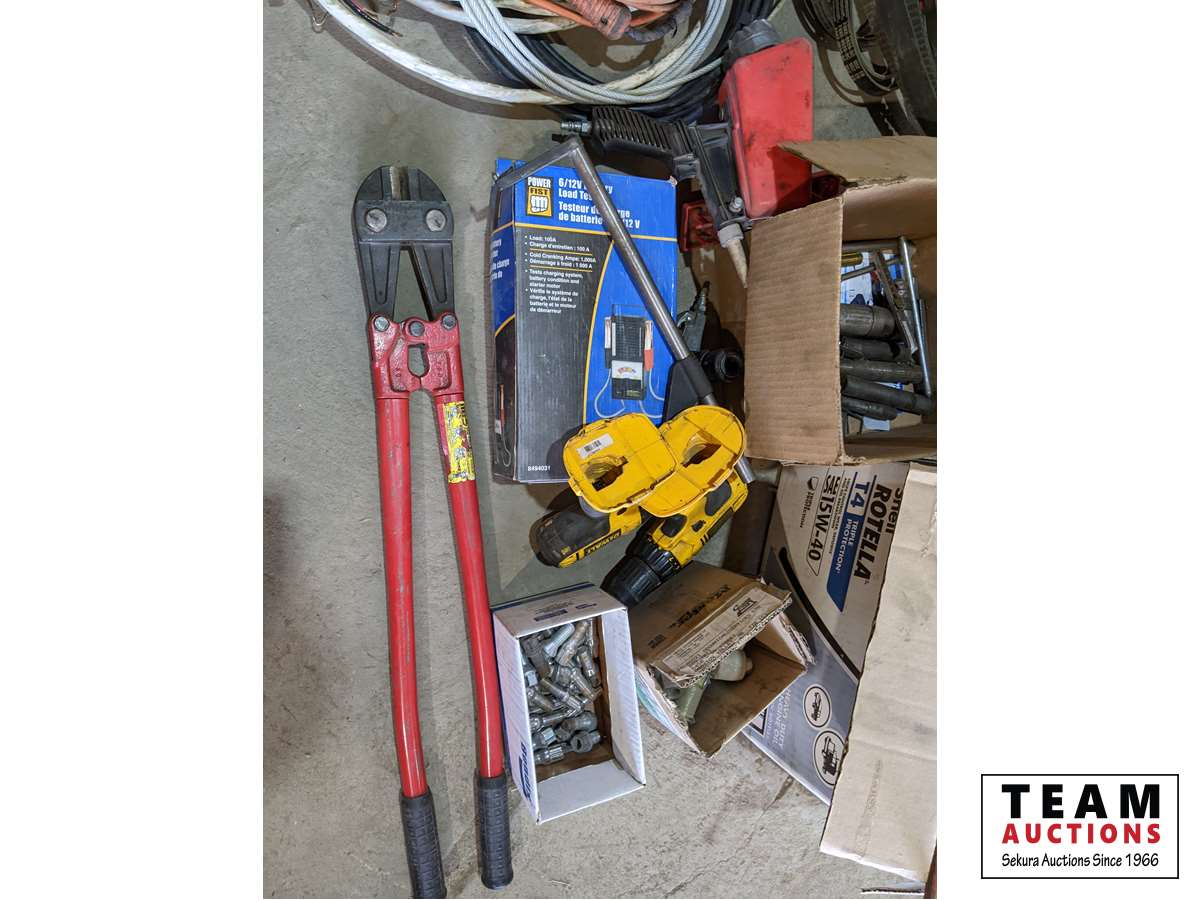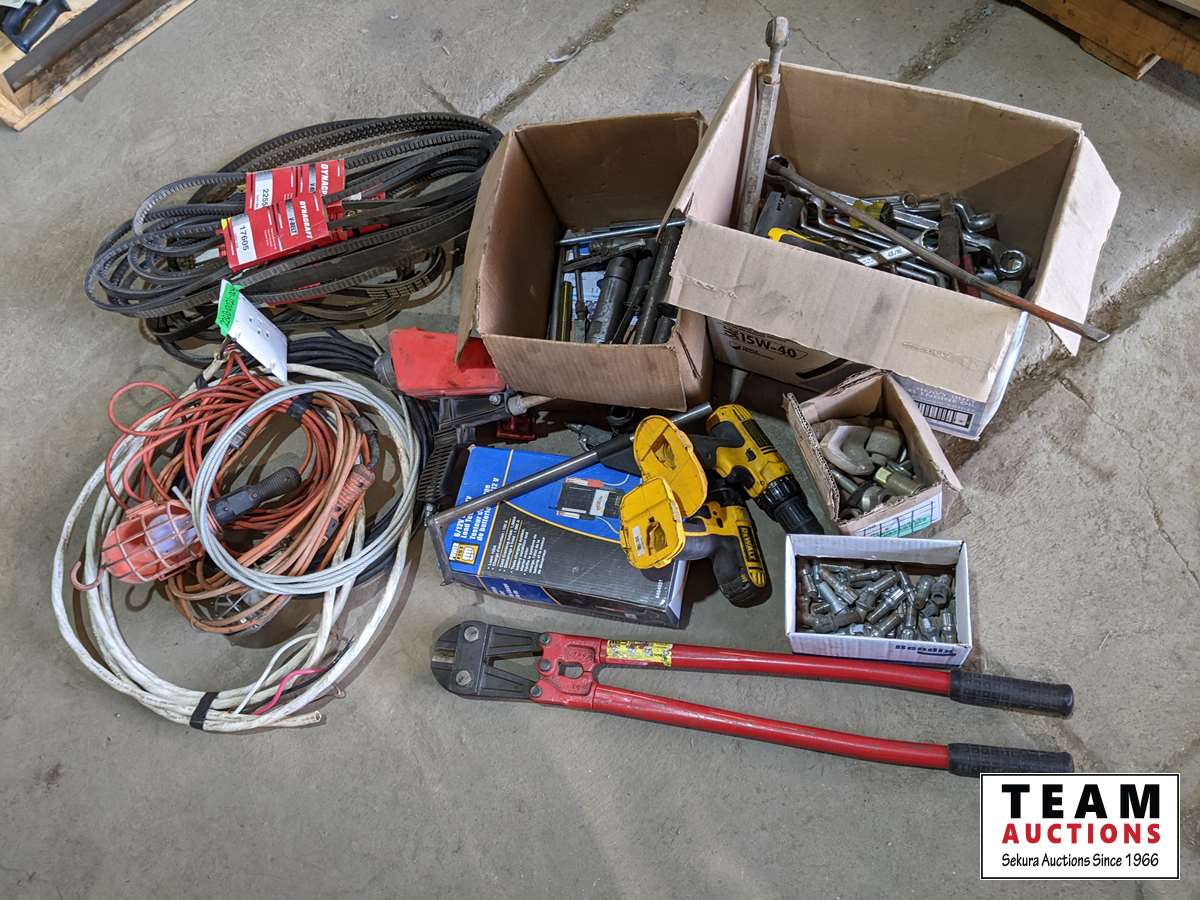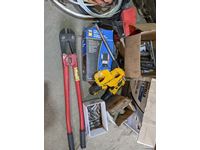 Miscellaneous belts, wrenches, bolt cutters, load tester, drill