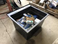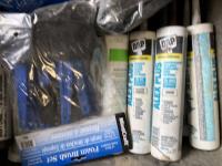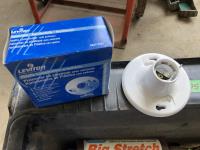plastic outlet covers, foam paint brushes, light bulbs, light bases w/pull strings, silicone, butcher paper, extension cord ends, utility sink