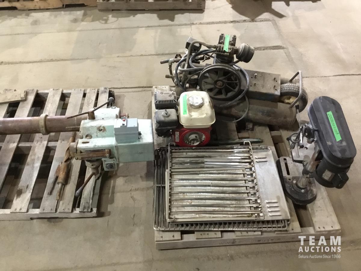 Emglo air compressor (inoperable), Honda motor (inoperable), grill trays