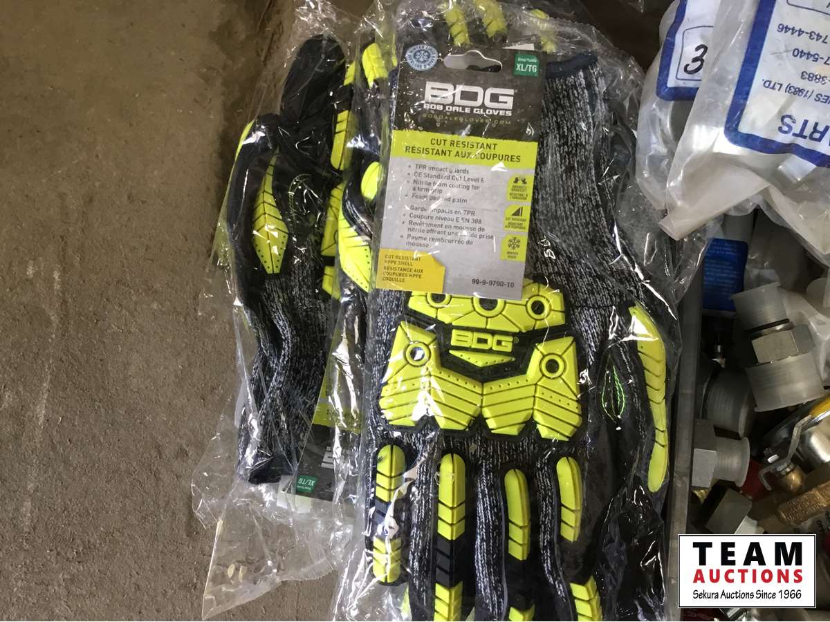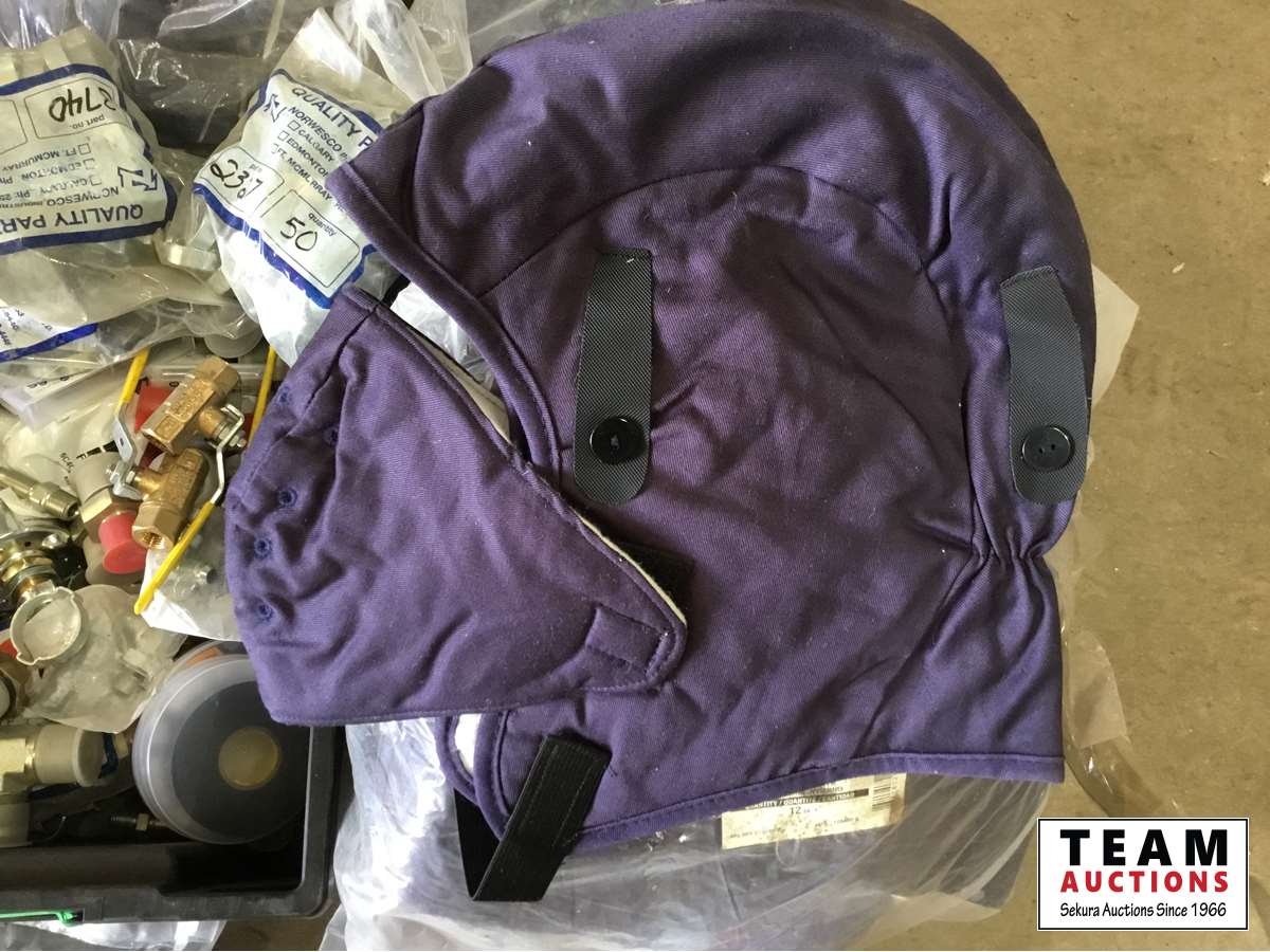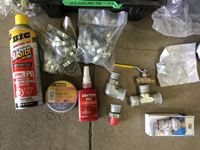 Clamps, valves, thread locker, electrical tape, cut resistant gloves, winter hard hat liners