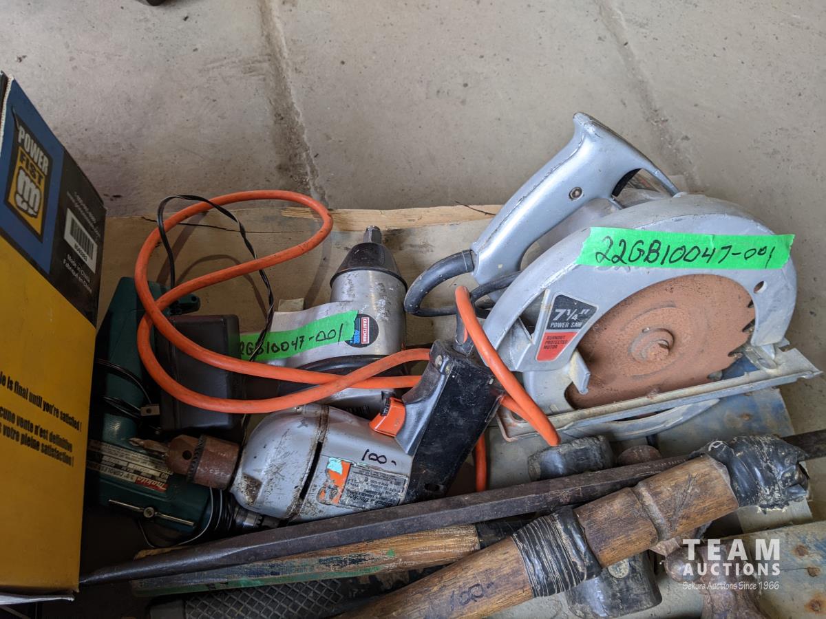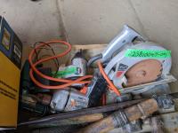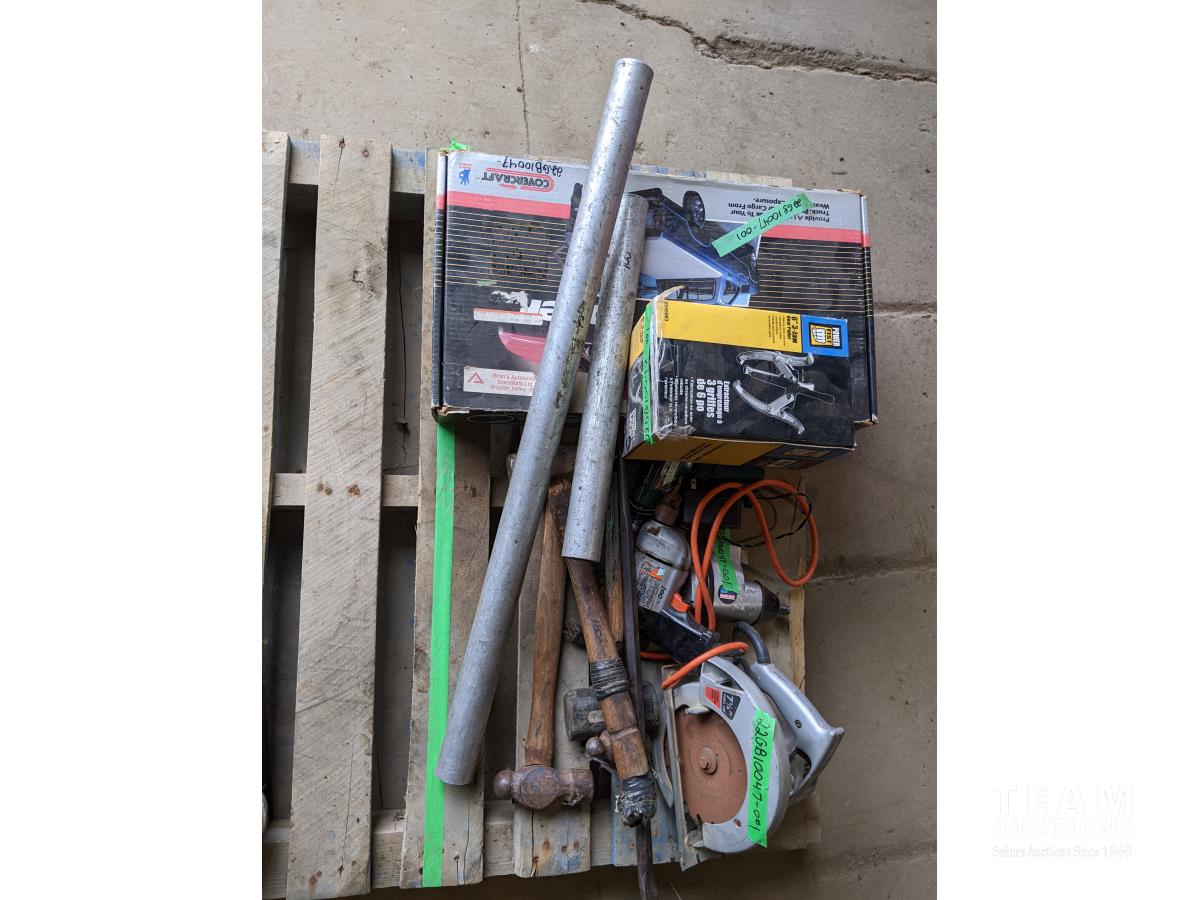 Skil Circular saw, Makita 1/4 inch drill, hammers, mallet, sledge hammer, pry bar, gear puller, 1/2 inch air impact, short box soft tonneau cover