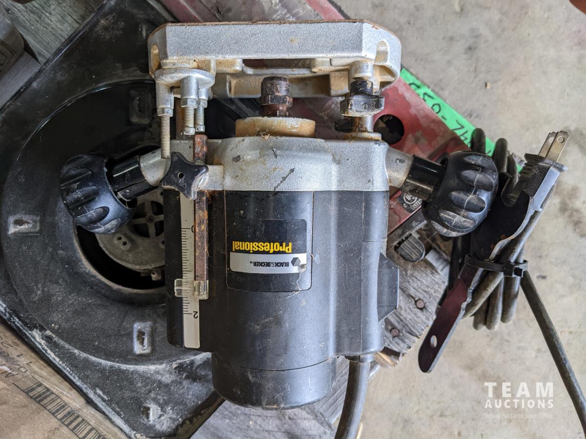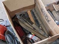 palm sander, router, grinders, drills, axes, wire brushes, heat gun